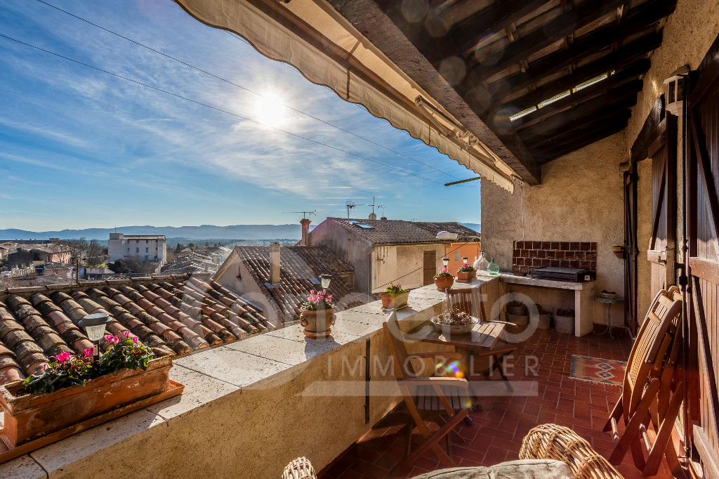 EXCLUSIVITÉ : Située au coeur du vieux village avec une vue imprenable sur la plaine des maures, cette belle maison d'env. 150 m² sur 2 niveaux comprend au RDC : cuisine équipée et aménagée, cellier, séjour double d'env. 60 m² avec cheminée, terrasse...