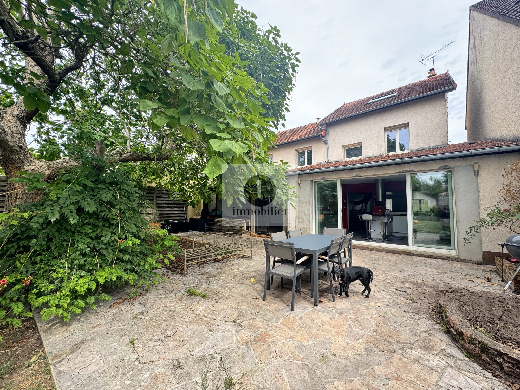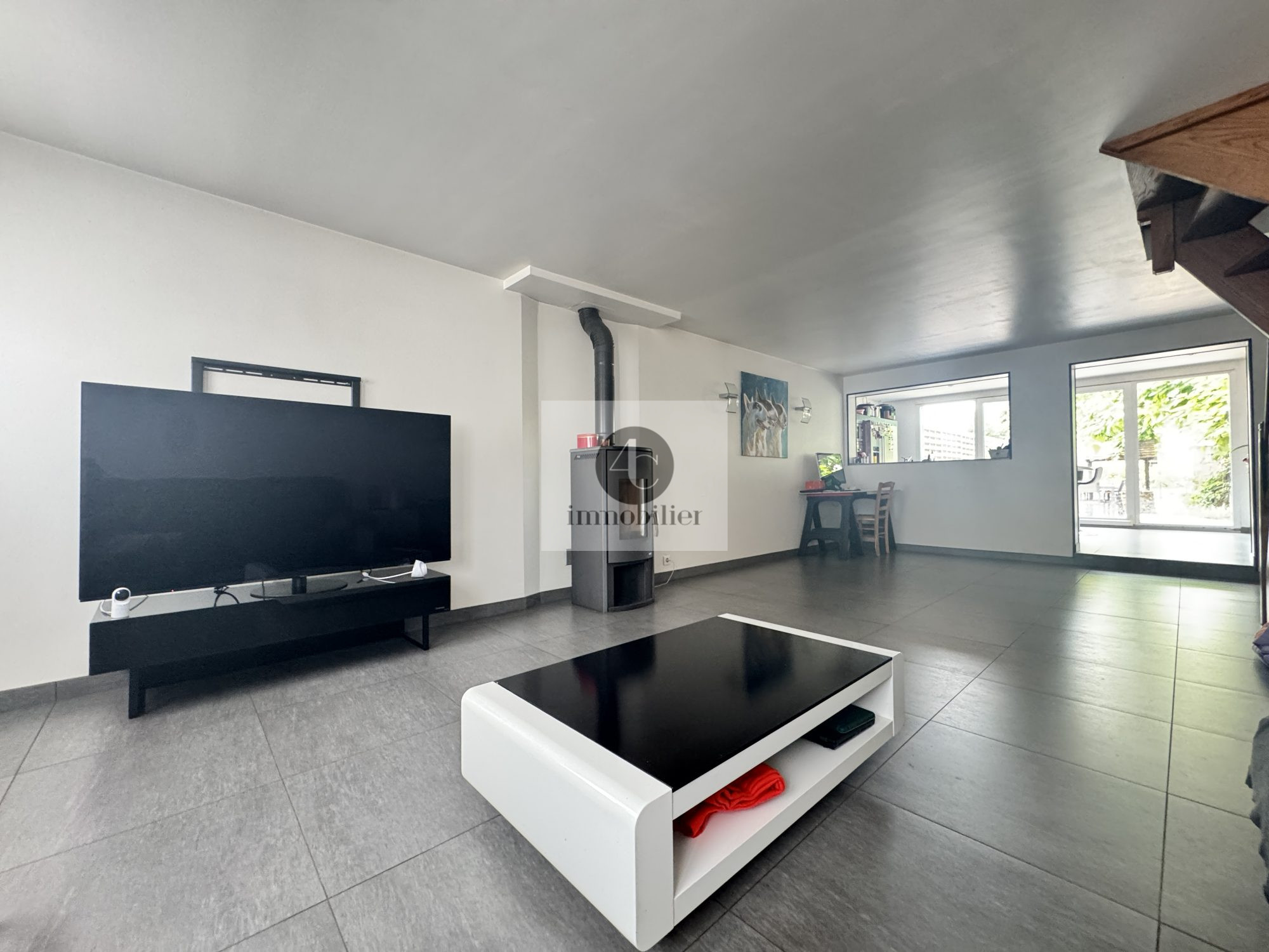 Très belle maison de quartier sans travaux, mitoyenne d'un seul côté, comprenant sous sol total avec garage, un grand salon séjour traversant avec poêle à granules, une cuisine aménagée et équipée récente, 3 chambres...