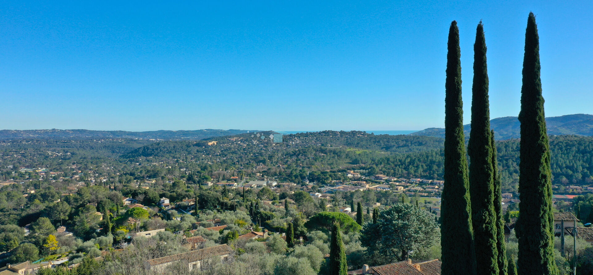 Belle vue dégagée sur les collines du Tanneron pour cette très jolie villa contemporaine d'une superficie de 210 m² habitables, en majorité de plain pied, édifiée sur un jardin paysager de 2 500 m².