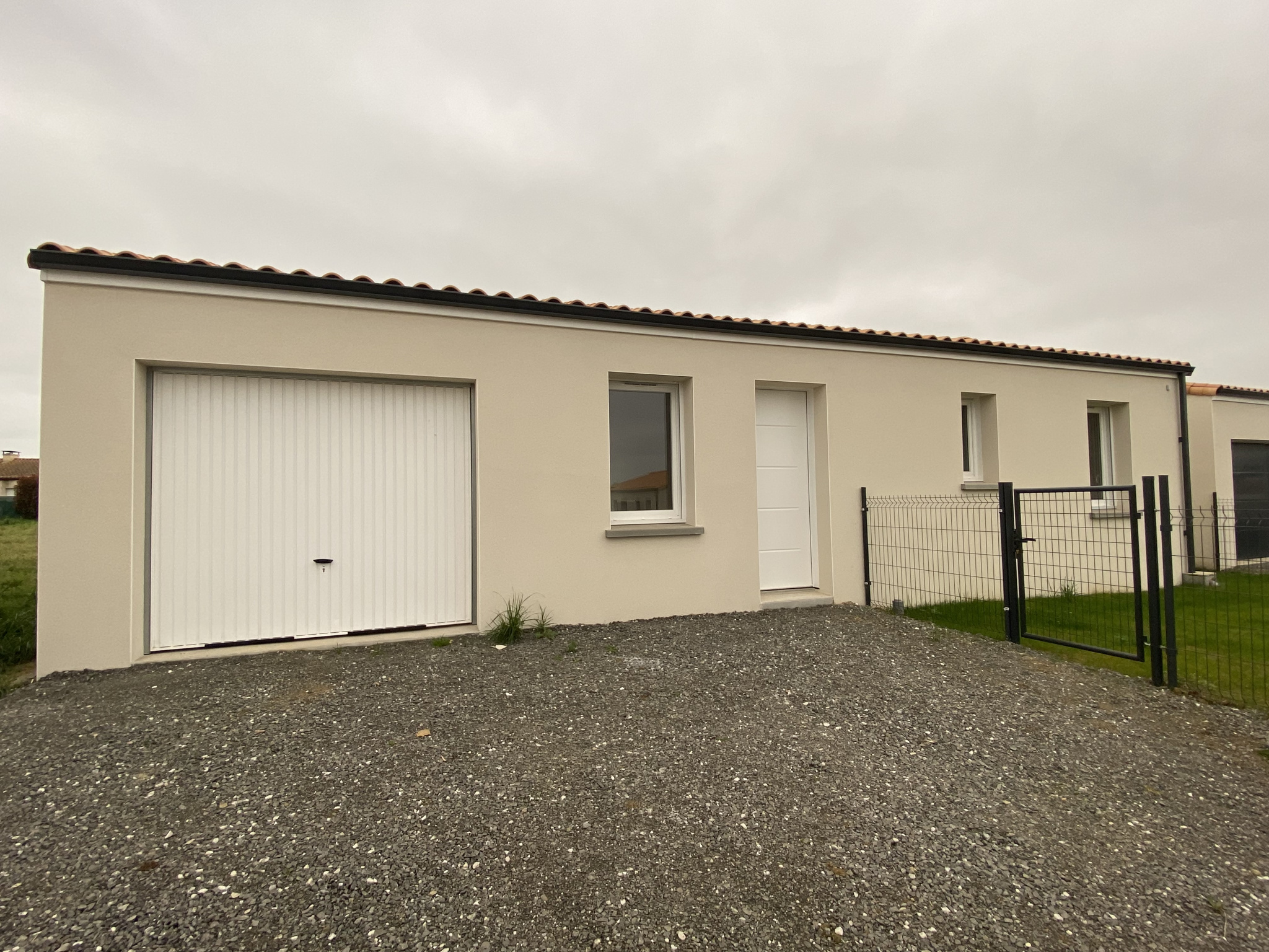 Au calme entre Legé et Rocheservière, maison comprenant : pièce de vie sur cuisine ouverte, arrière cuisine, 2 chambres, salle d'eau, wc, dégagement.