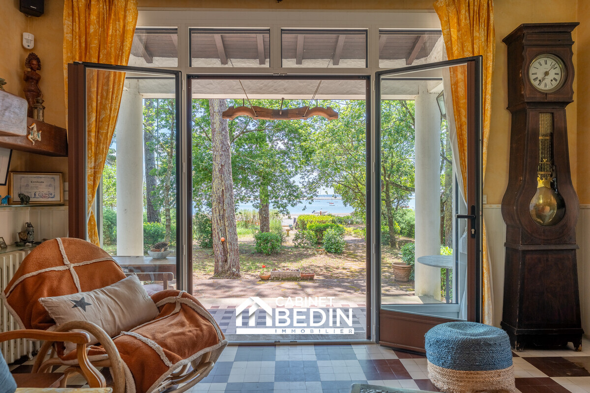 PREMIERE LIGNE AVEC ACCES DIRECT A LA PLAGE. Implantée sur une magnifique parcelle arborée de plus de 2 000 m², cette villa des années 50 offre une vue spectaculaire sur la Grande Dune du Pilat. Baignée de lumière, elle comprend au rez-de-chaussée un hall d...