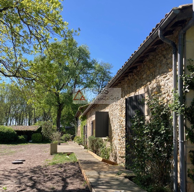 Belle maison en pierre de type longère, baignée de lumière, rénovée avec soin dans un esprit contemporain, avec tout le confort moderne, économe en énergie, dans son parc arboré de près de 3ha, à 50 minutes de Bordeaux centre..