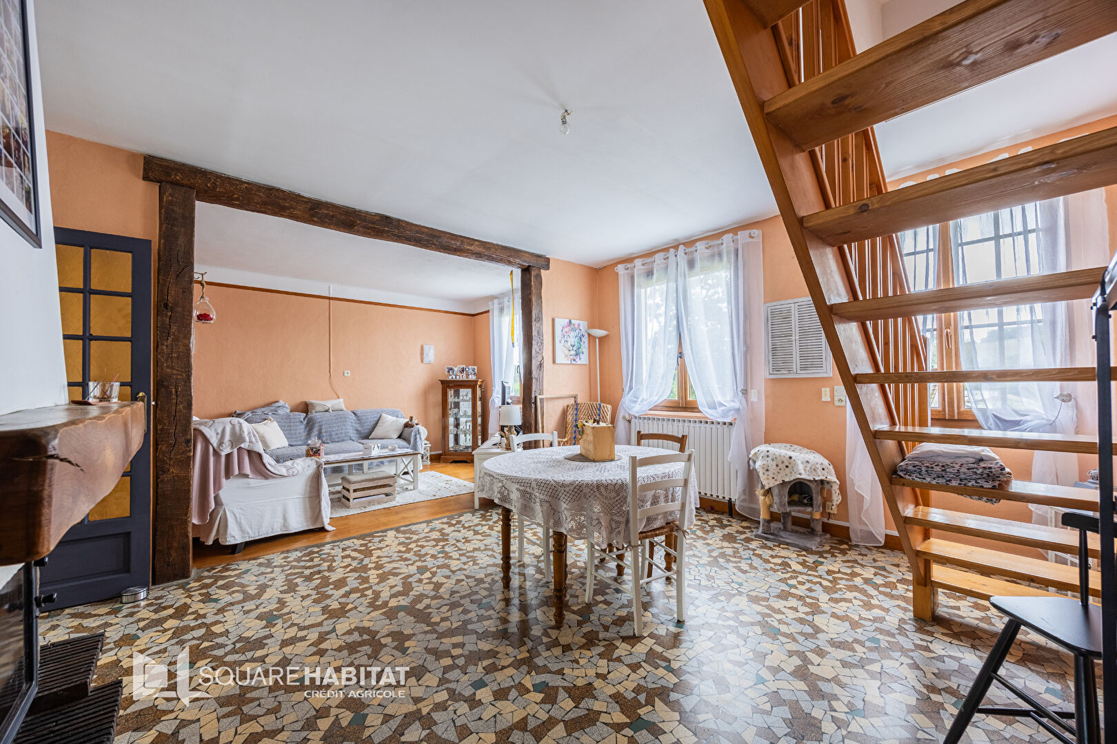 Au rez-de-chaussée, vous profiterez d'une spacieuse pièce de vie ...
