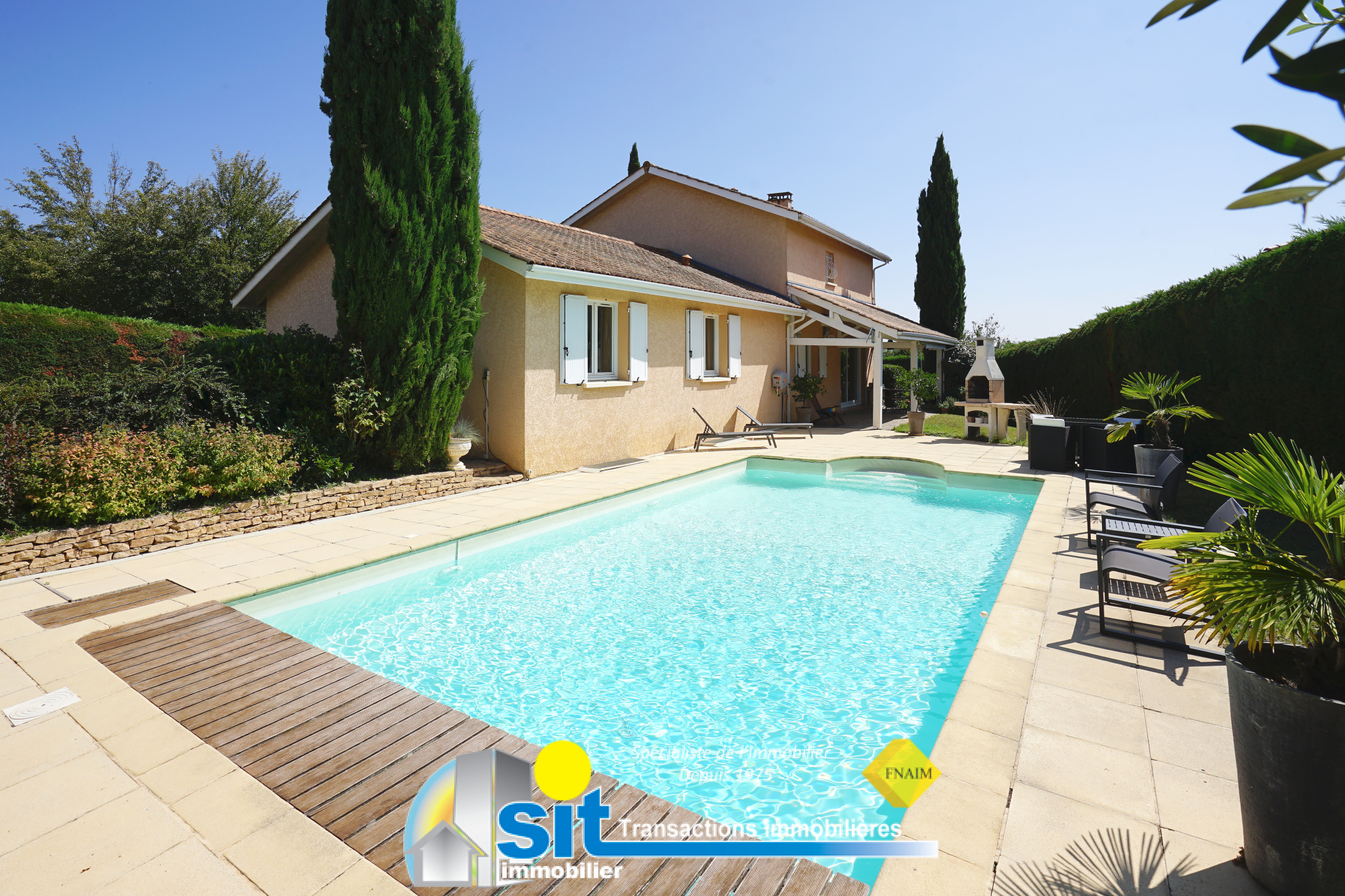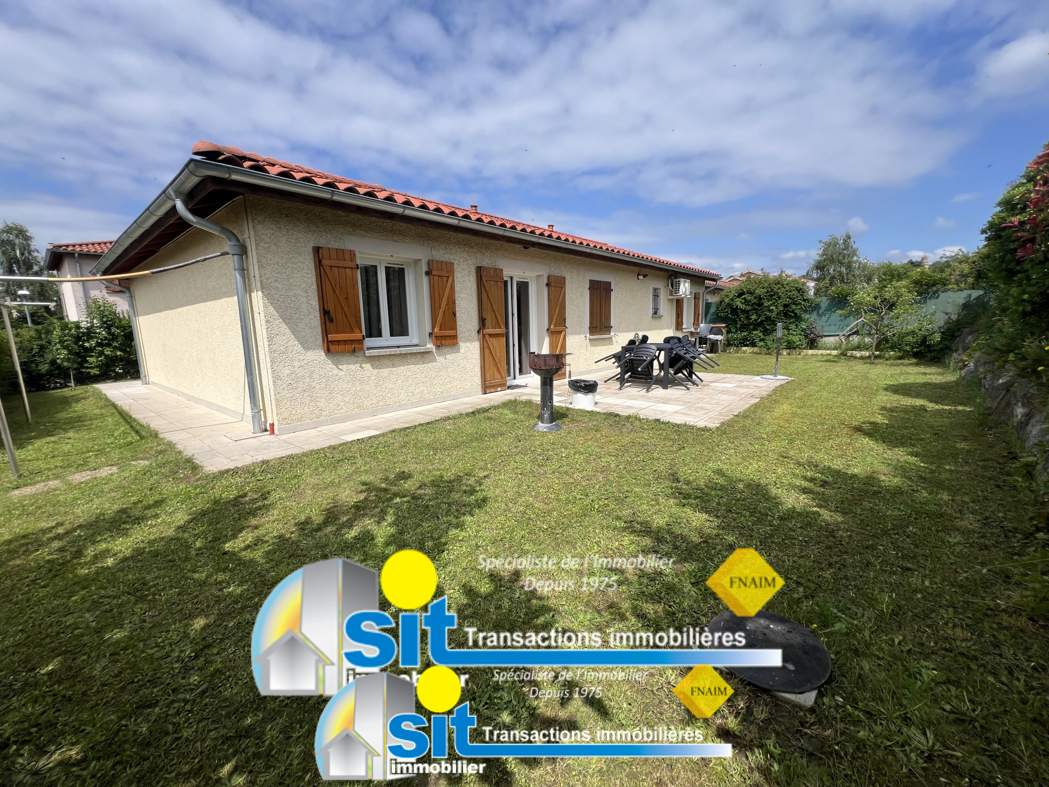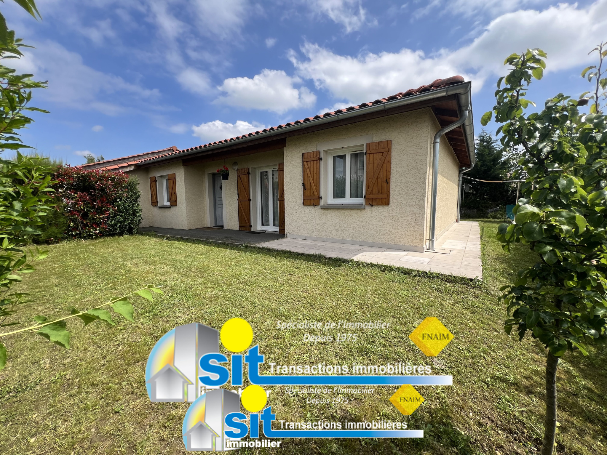 L'agence SIT IMMOBILIER vous propose à VENTE cette VILLA de PLAIN-PIED, d'environ 92m2 HABITABLES sur un TERRAIN clos et arboré de 517m2.
