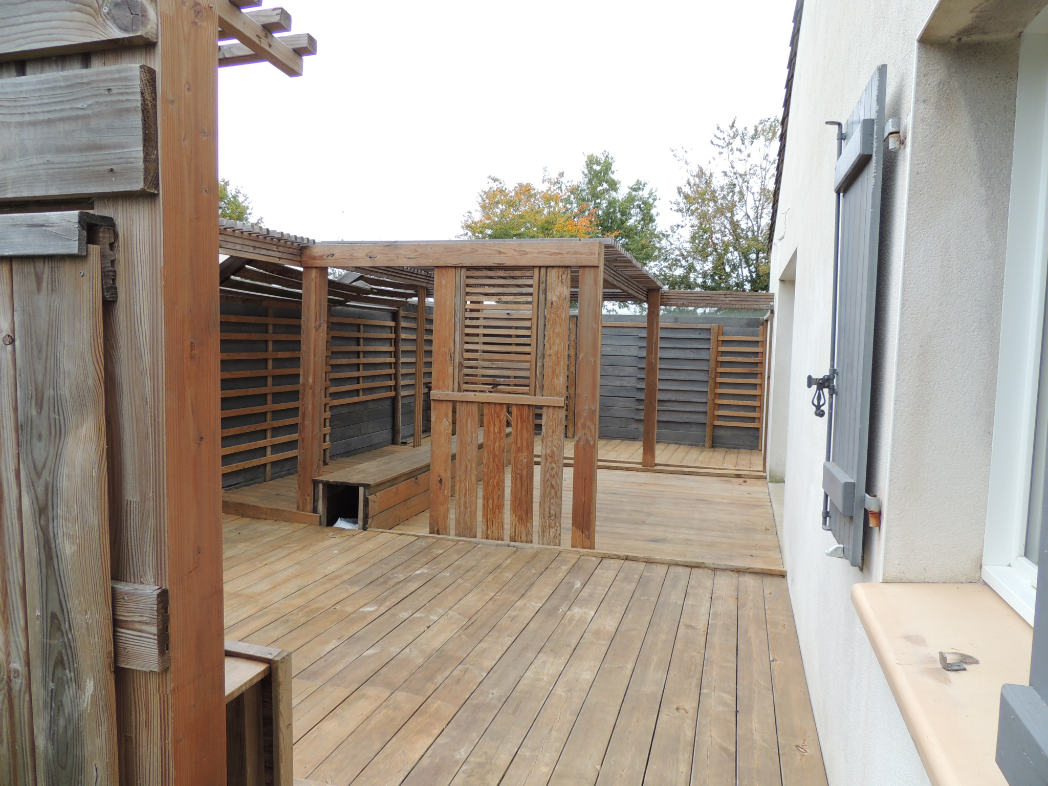- Au rez-de-chaussée : un salon avec cheminée et poêle à bois, cuisine séparée, une pièce avec poêle à bois, déga...
