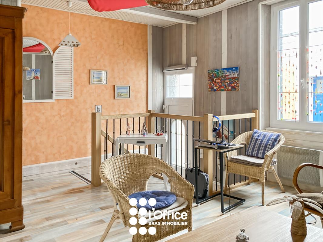 L'Office Bras Immobilier vous présente, quartier Guynemer, à deux pas de la grande plage, du marché Arago et de tous commerces, une maison sablaise de T3 sur deux niveaux située au calme d'une impasse avec son agréable séjour/salon traversant, cuisi...