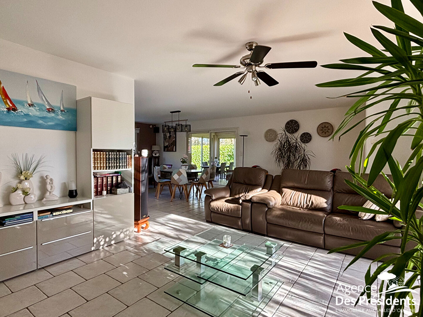 Au coeur d'un cadre résidentiel au calme, très accueillante maison de plain-pied 102 m2 hab. env. parfaitement entretenue = grand salon, lumineuse salle à manger sur jardin, 3 chambres, SdE, cuisine équipée, 2 grands garages 25m2 et 34 m2 et stationnement...