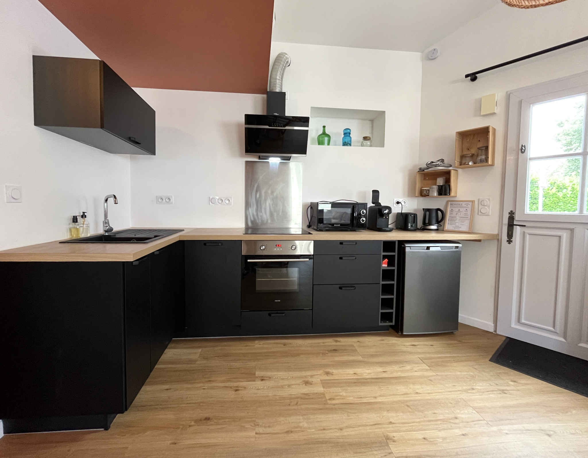 AU REZ-DE-CHAUSSÉE : UNE PIÈCE DE VIE AVEC CUISINE AMÉNAGÉE, WC