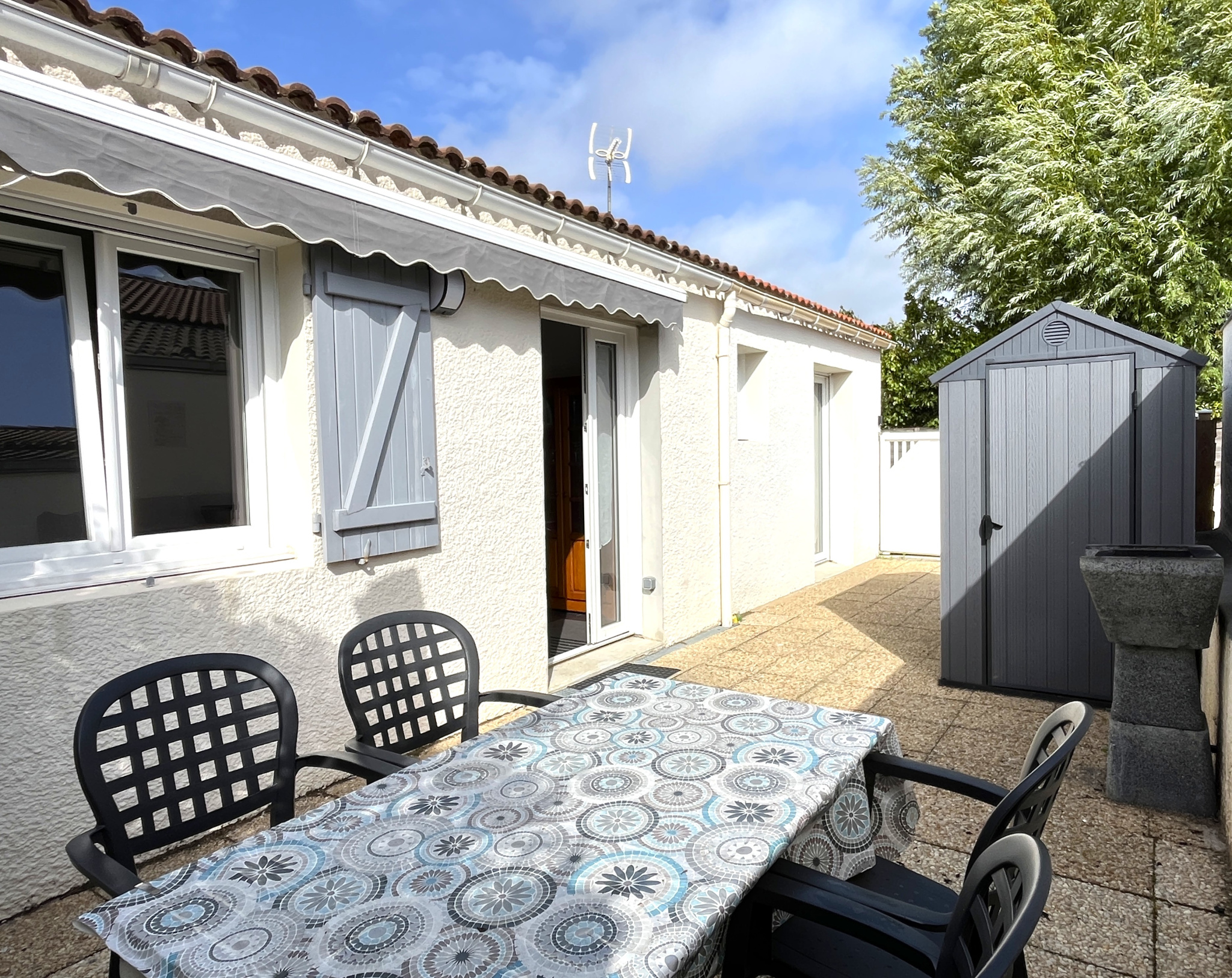 À seulement quelques encablures de la plage de Tanchet et du quartier des Présidents, découvrez cette jolie maison de plain-pied au charme discret. Baignée de lumière grâce à son exposition plein sud, la pièce de vie et la cuisine s'ouvrent sur un agréabl...