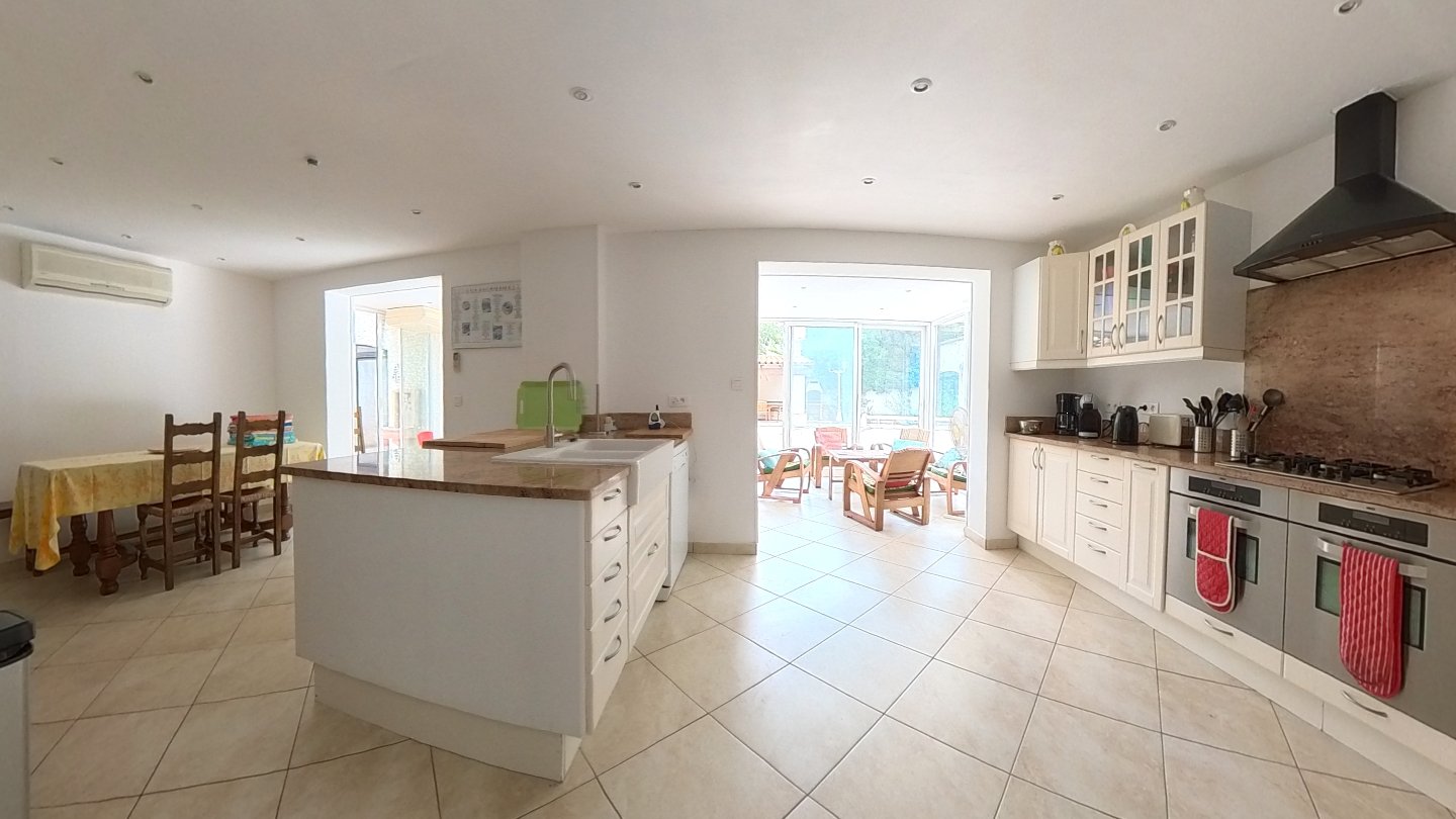Hérault 34710 Lespignan .Maison de 8 pièces avec 5 chambres, terrain avec terrasse, piscine couverte.