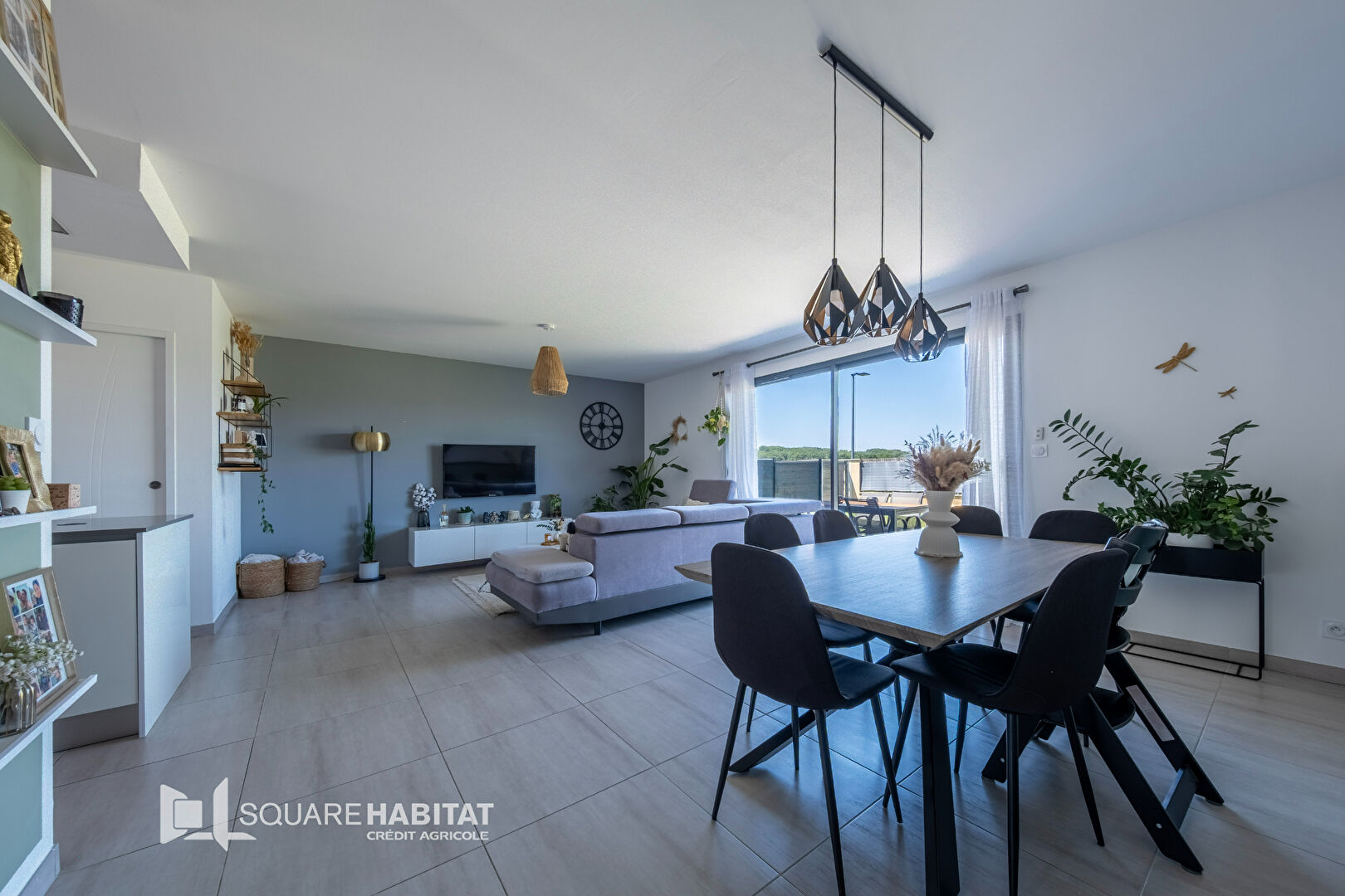 Coup de coeur assuré, vous entrez dans un salon très lumineux avec cuisine ouverte avec un cellier.