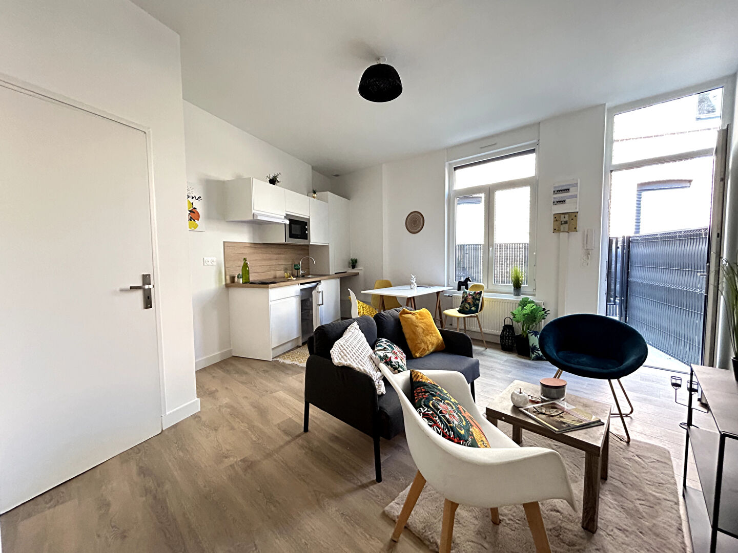 LILLE WAZEMMES: Maison d'environ 52m² entièrement rénovée de A à Z, située entre les métros Wazemmes et Montebello, à proximité des commerces, de la place du marché et des accès routiers. Elle est composée d'un séjour traversant et lumineux, d'u...
