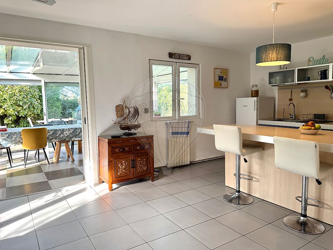 Dès l'entrée, on découvre une cuisine indépendante, puis un séjour lumineux prolongé par une belle terra...