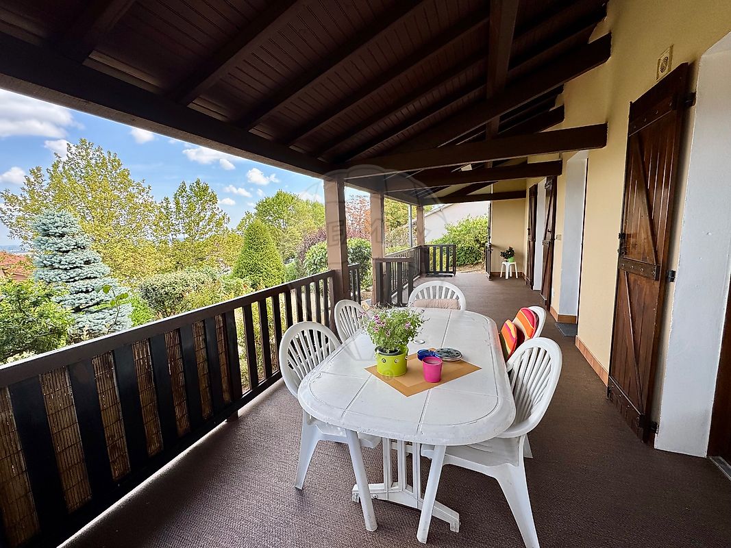 <p>Dès votre arrivée, une grande terrasse abritée vous invite à profiter d’une belle vue dégagée...