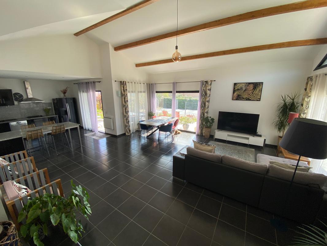 Maison des années 70 de 159 m² habitables en bon état général, 5 chambres, 2 salles de bains, séjour de 31 m², cuisine équipée récente sortant de plain-pied sur terrasse et jardin, double vitrage pvc, chauffage gaz de ville, garage, cave et buanderie en sous-...