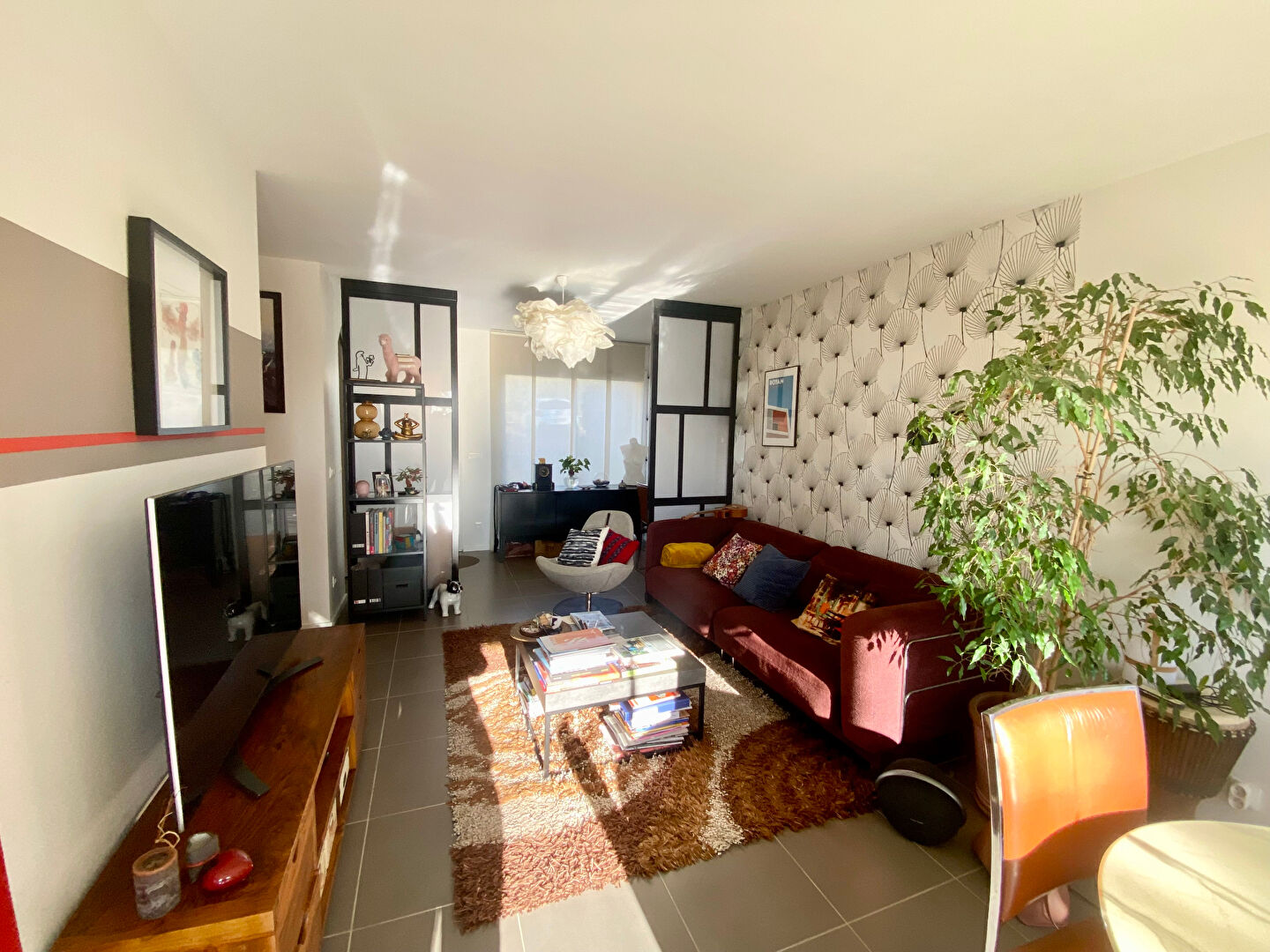Dès l'entrée, la pièce de vie séduit par son volume et sa luminosité : un...