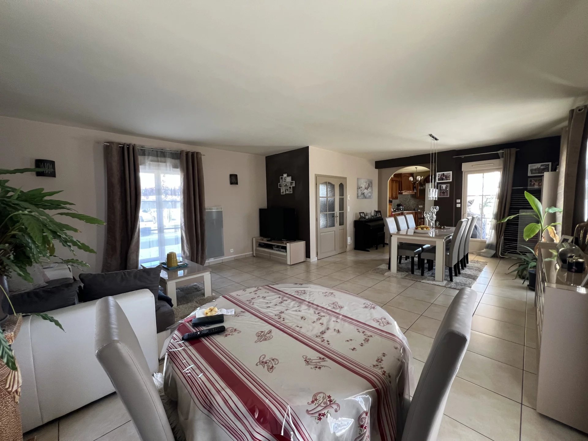 15 minutes AUXERRE, pavillon 5 pièces : entrée, salon-séjour, cuisine équipée, cellier, 4 chambres dont 1 suite en rdc, salle de bains avec douche. Garage double. Terrasse couverte. Terrain clos de 1247 m².