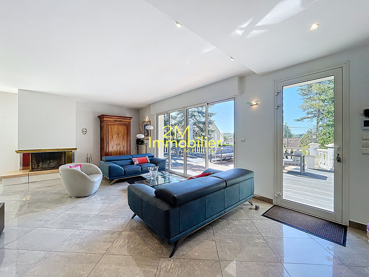 Cette maison comprend un vaste séjour de plus de 40m² avec accès terrasse, cuisine équipée, 3 chambres, bureau, salle de bains avec douche et baignoire, dressing.