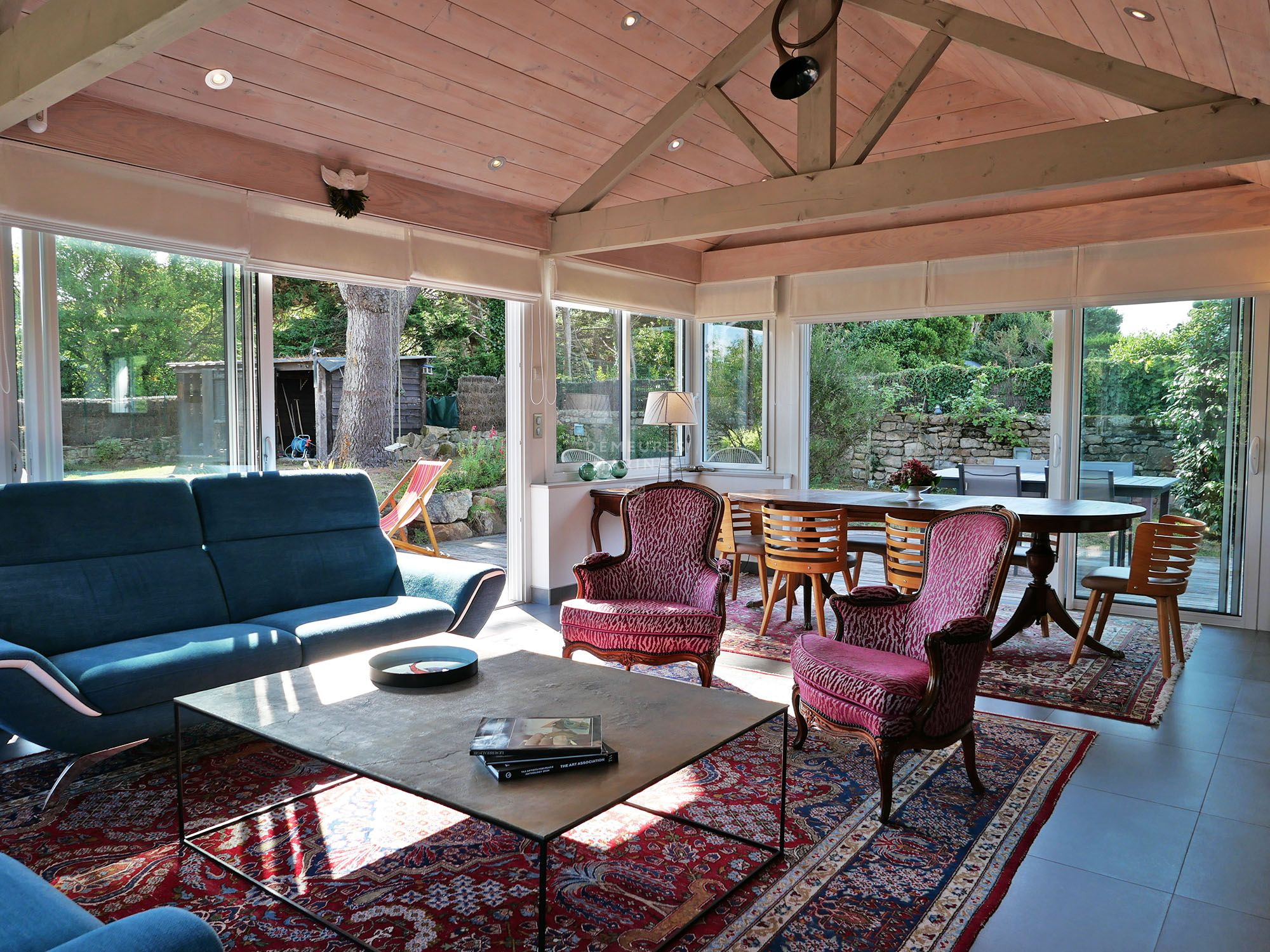 Nichée dans un cadre naturel préservé, avec accès direct à la plage, cette maison en pierre rénovée avec soin vous offre une vue mer spectaculaire sur la baie de Quiberon.