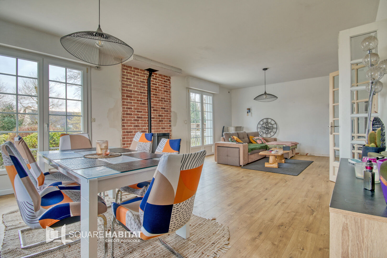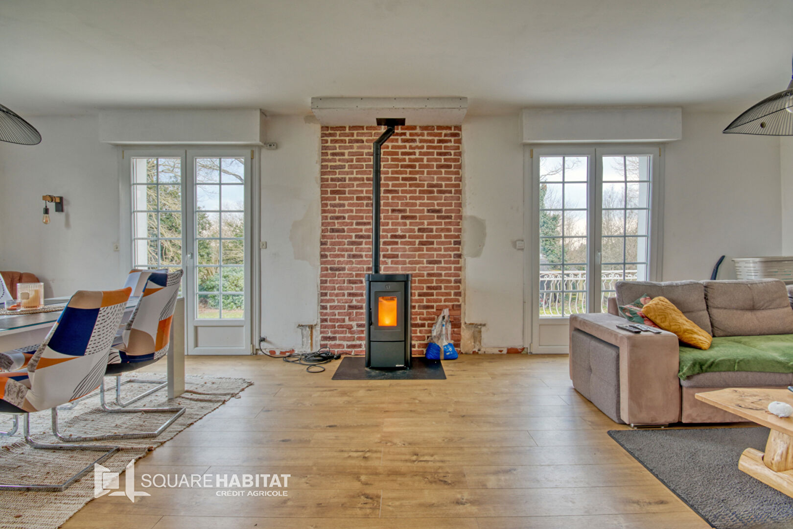 une entrée, une pièce de vie agrémentée d'un poêle à bois, av...