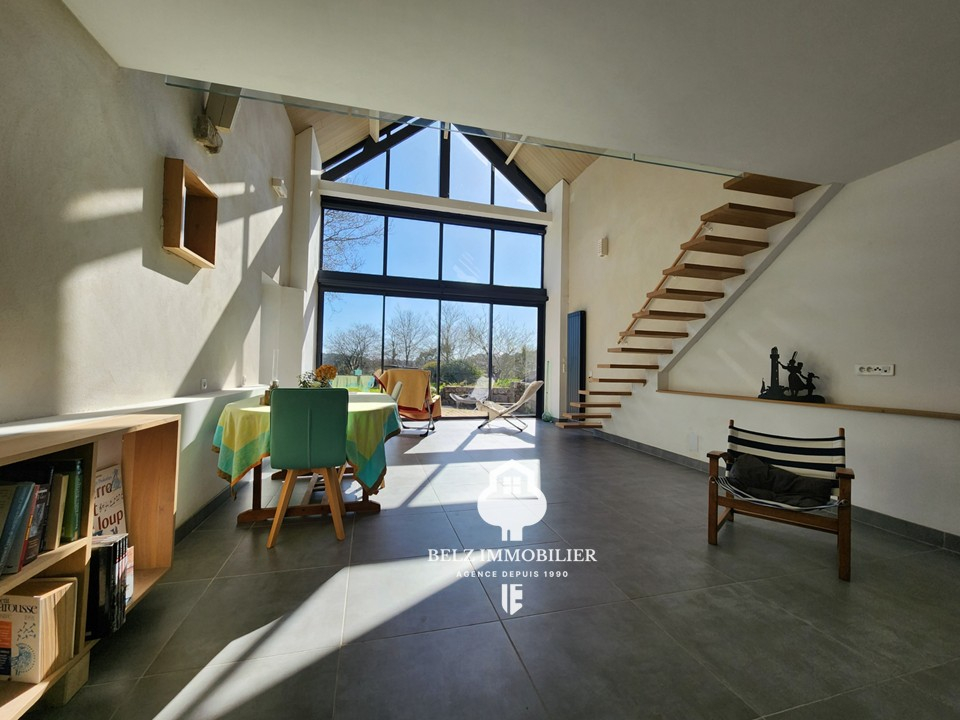 Située dans un cadre bucolique privilégié à Locoal-Mendon, cette maison s'adresse directement aux amoureux de la nature en quête de sérénité. Édifiée sur un terrain de 6 680 m², dont une partie boisée préservée, cette demeure construite avec des matériaux...