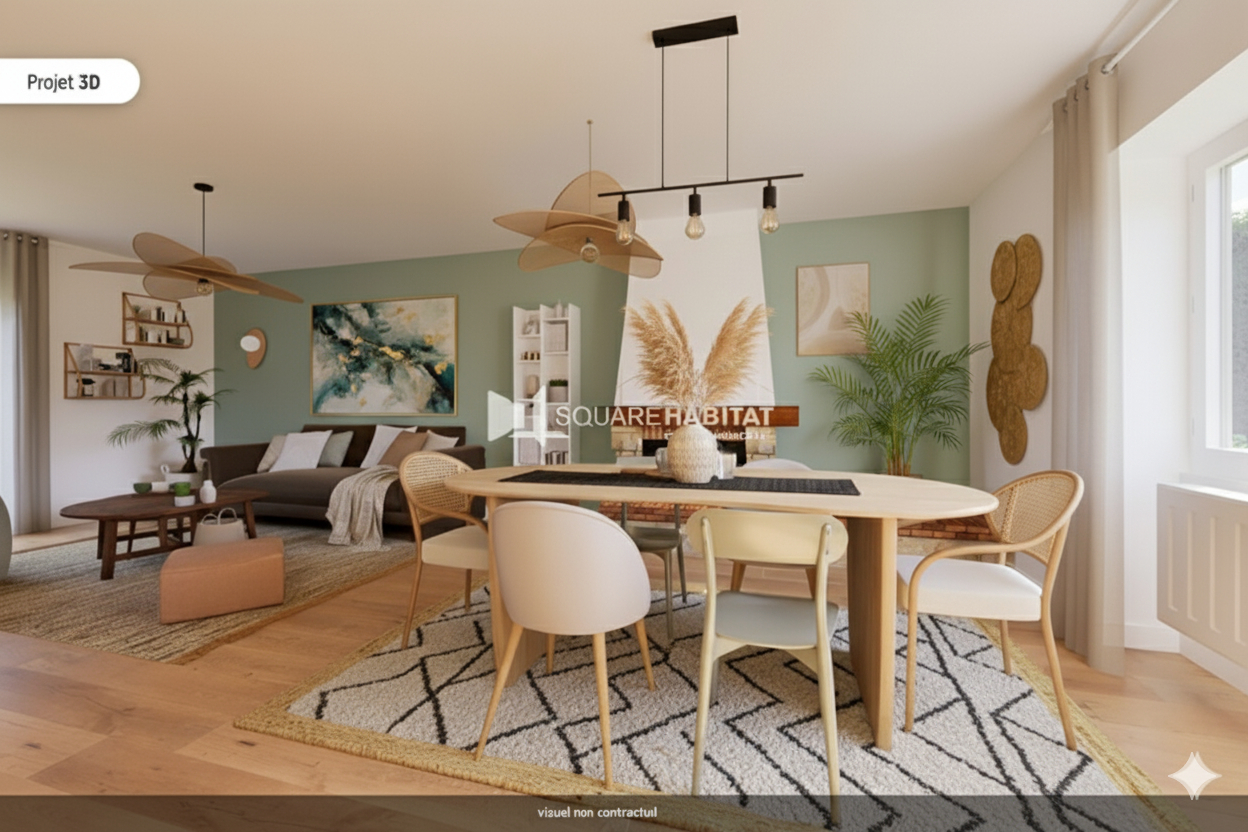 Maison de 100m² habitables, composée au rez de chaussée d'un salon/salle à manger de 32m² avec cheminée, une cuisine, une salle d&...