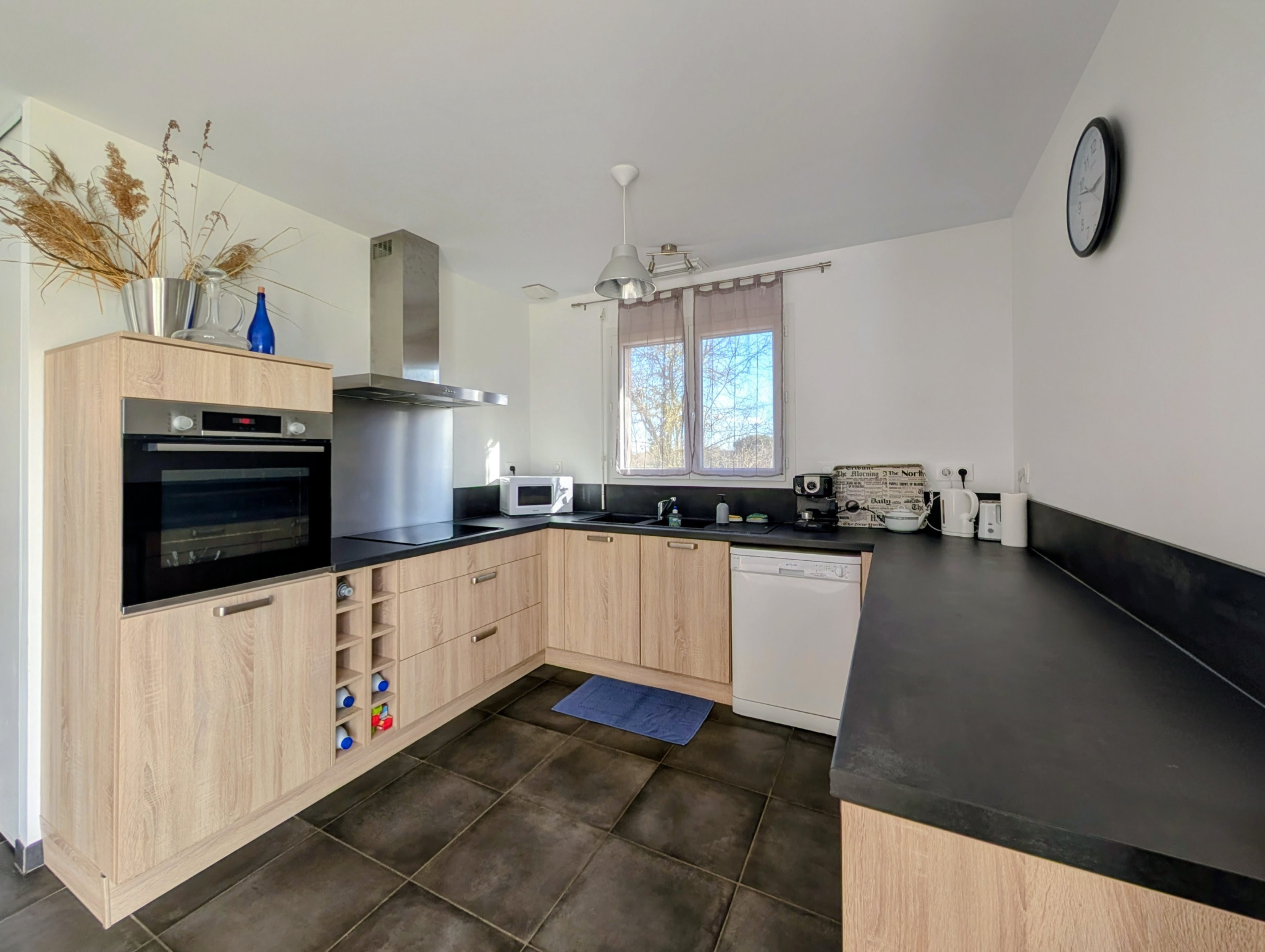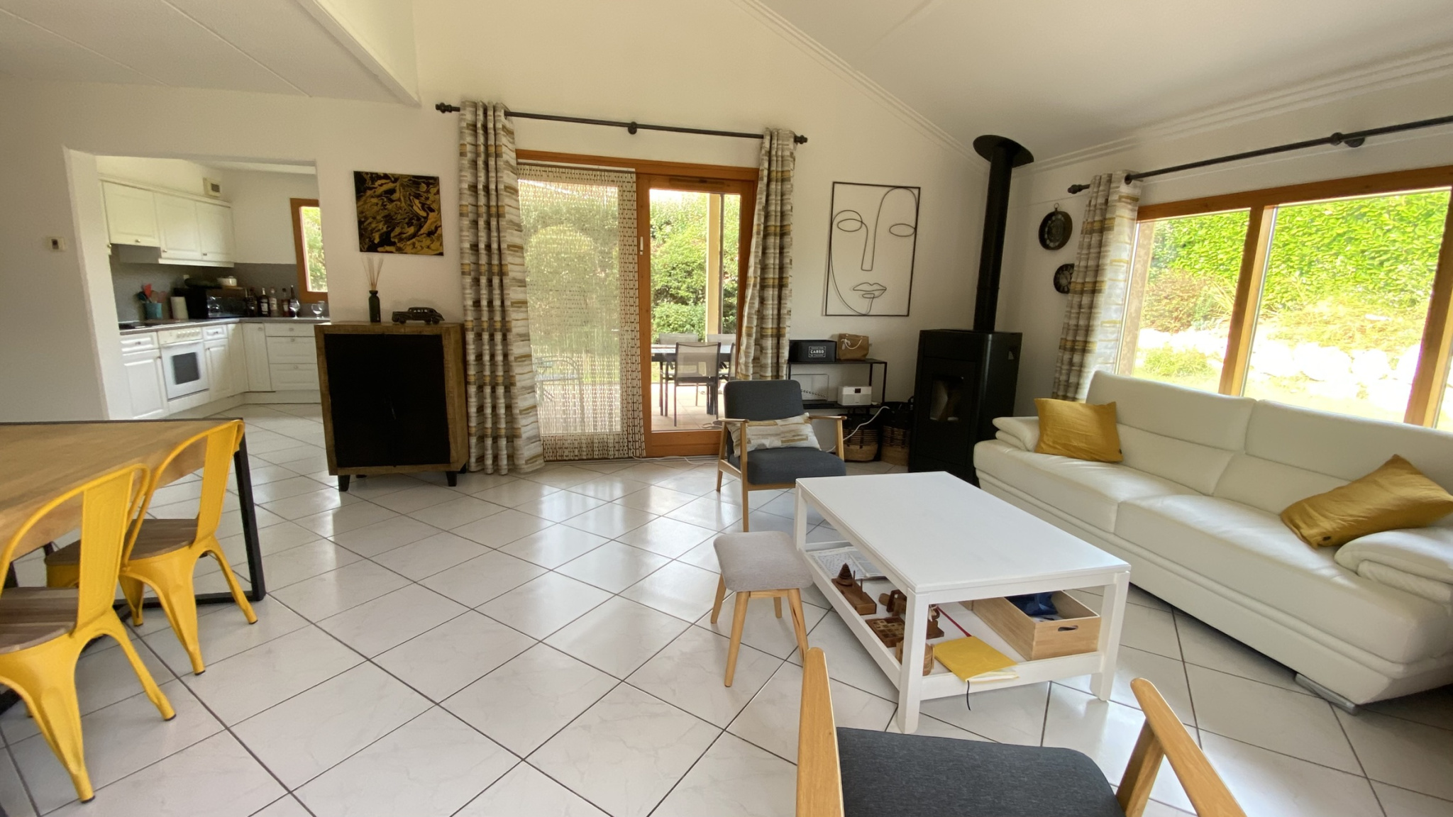 Entrée, salon/salle à manger, cuisine équipée accès terrasse, cellier, 3 chambres dont 1 avec dressing. Salle de bain/douche - double vasques, 2 wc. Garage isolé et dépendance de 12 m².