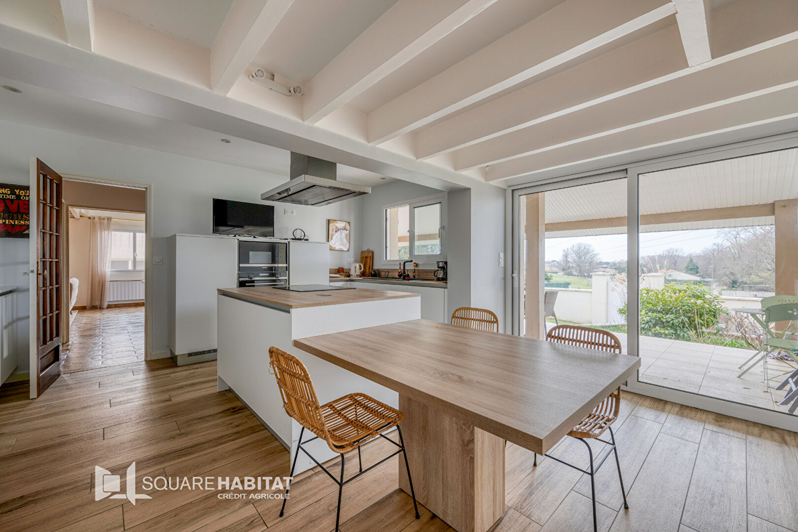 Maison composée d'une entrée desservant un salon-salle à manger lumineux avec une belle hauteur sous plafond. ...