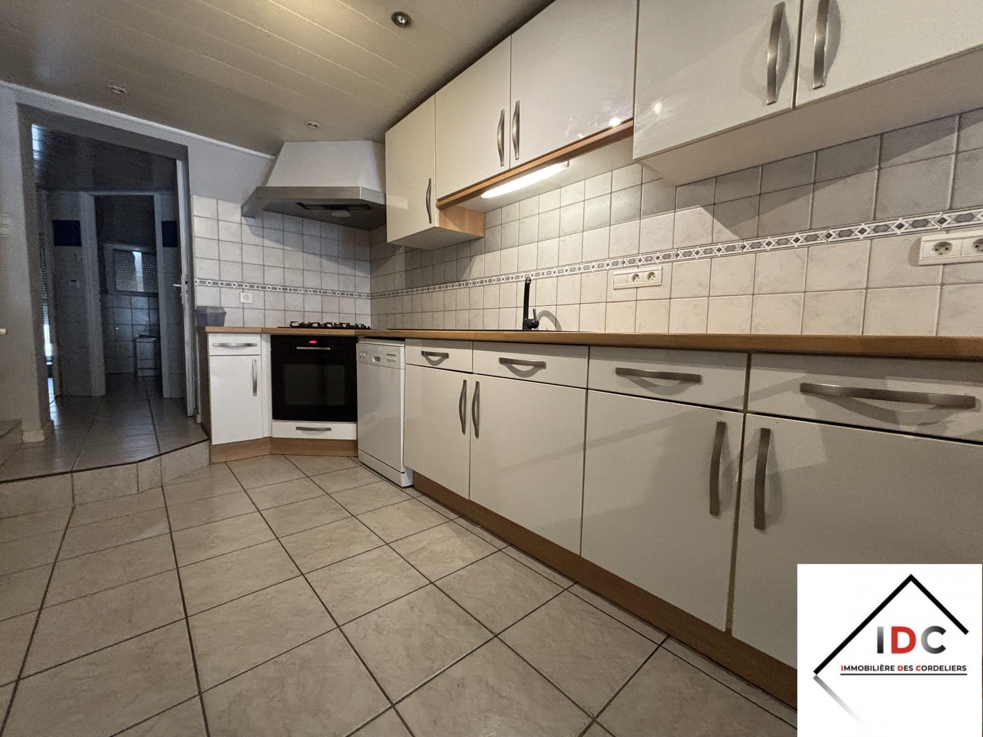 Lorquin, village avec commerces, maison de ville comprenant : entrée, salon-séjour, cuisine aménagée, salle de bains, douche, wc.