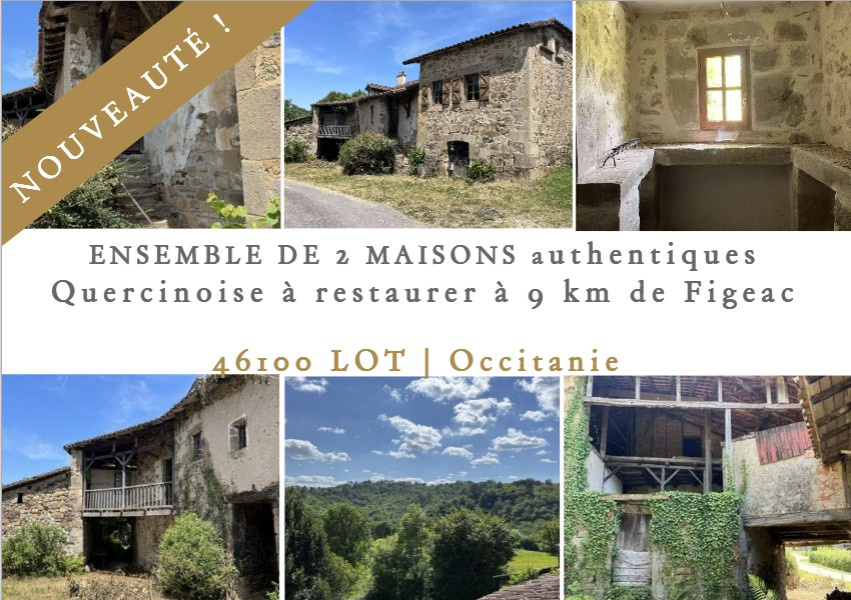 Une opportunité rare. Belle ensemble de 2 maisons authentiques Quercinoise à restaurer dans un petit hameau, situées au coeur d'une vallée à 9 km de Figeac dans le Lot. Ces maisons Quercinoise datent de plusieurs siècles et elles comportent encore de nomb...