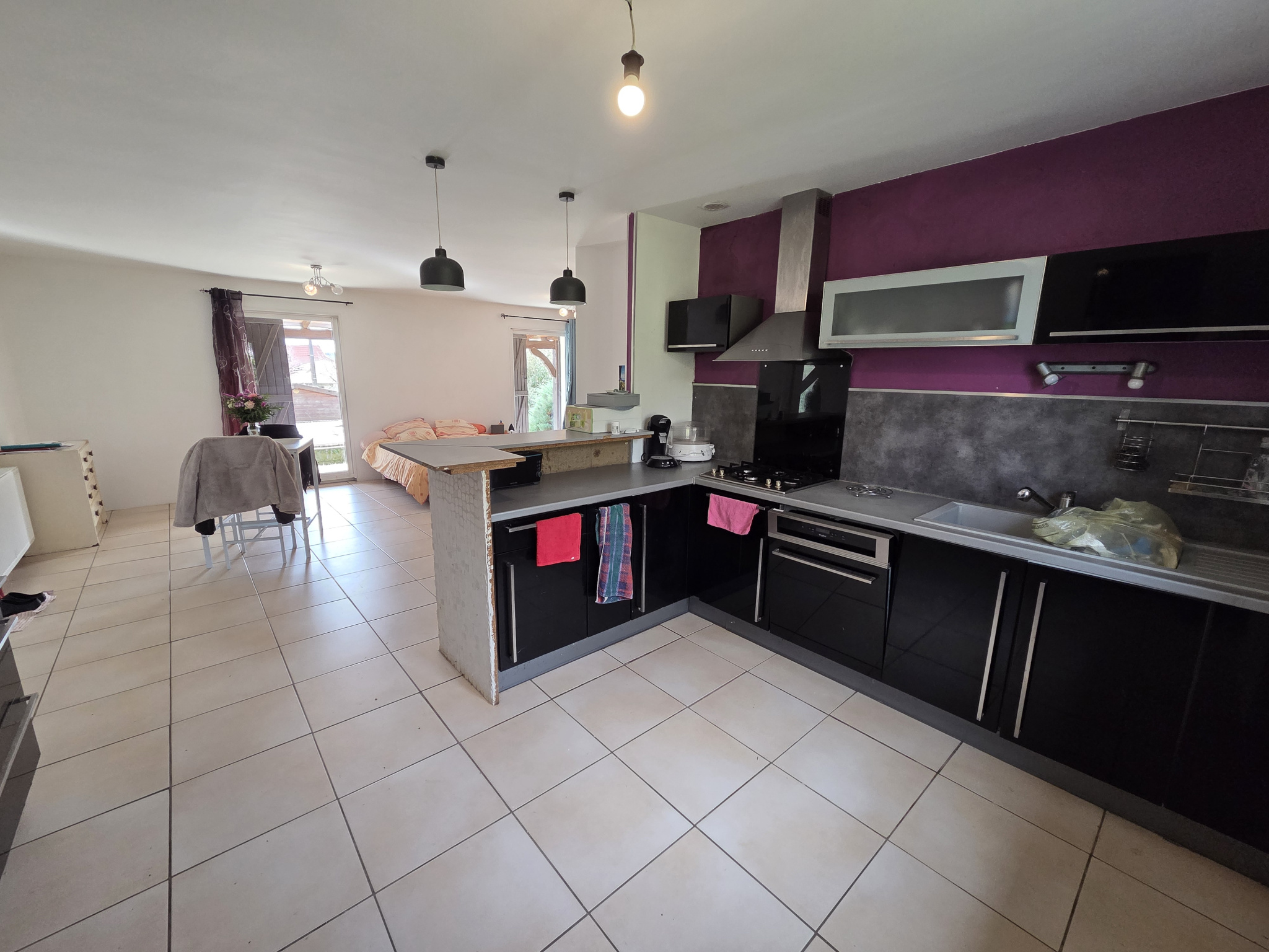 La maison comprend une cuisine lumineuse avec baie vitrée (15,4 m²), un sa...