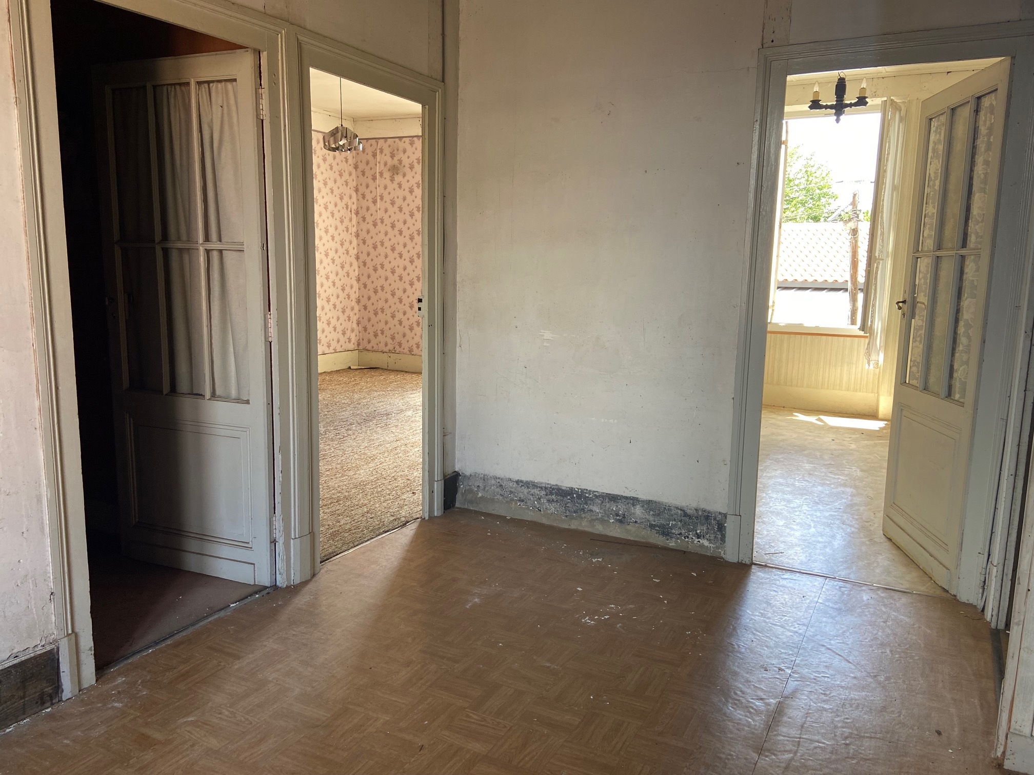 Maison à rénover offrant de beaux volumes. Elle comprend en rez-de-chaussée une entrée, salon/séjour, cuisine et WC ; à l'étage un palier desservant 4 chambres, une salle de bains, un WC et au-dessus un grenier aménageable de 60 m2.