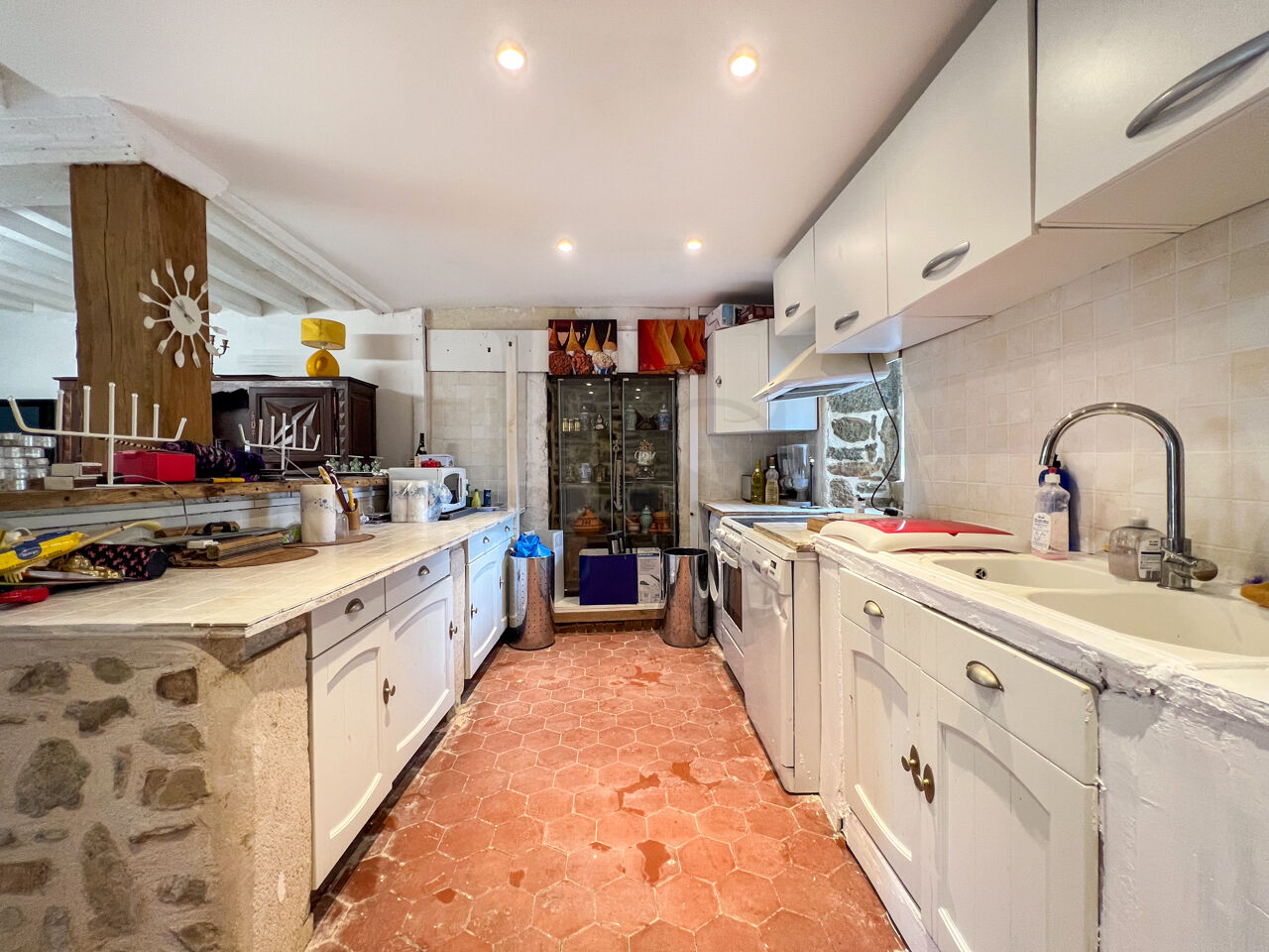 - Au rez-de-chaussée : entrée, cuisine, arrière cuisine, pièce (ancienne épice...