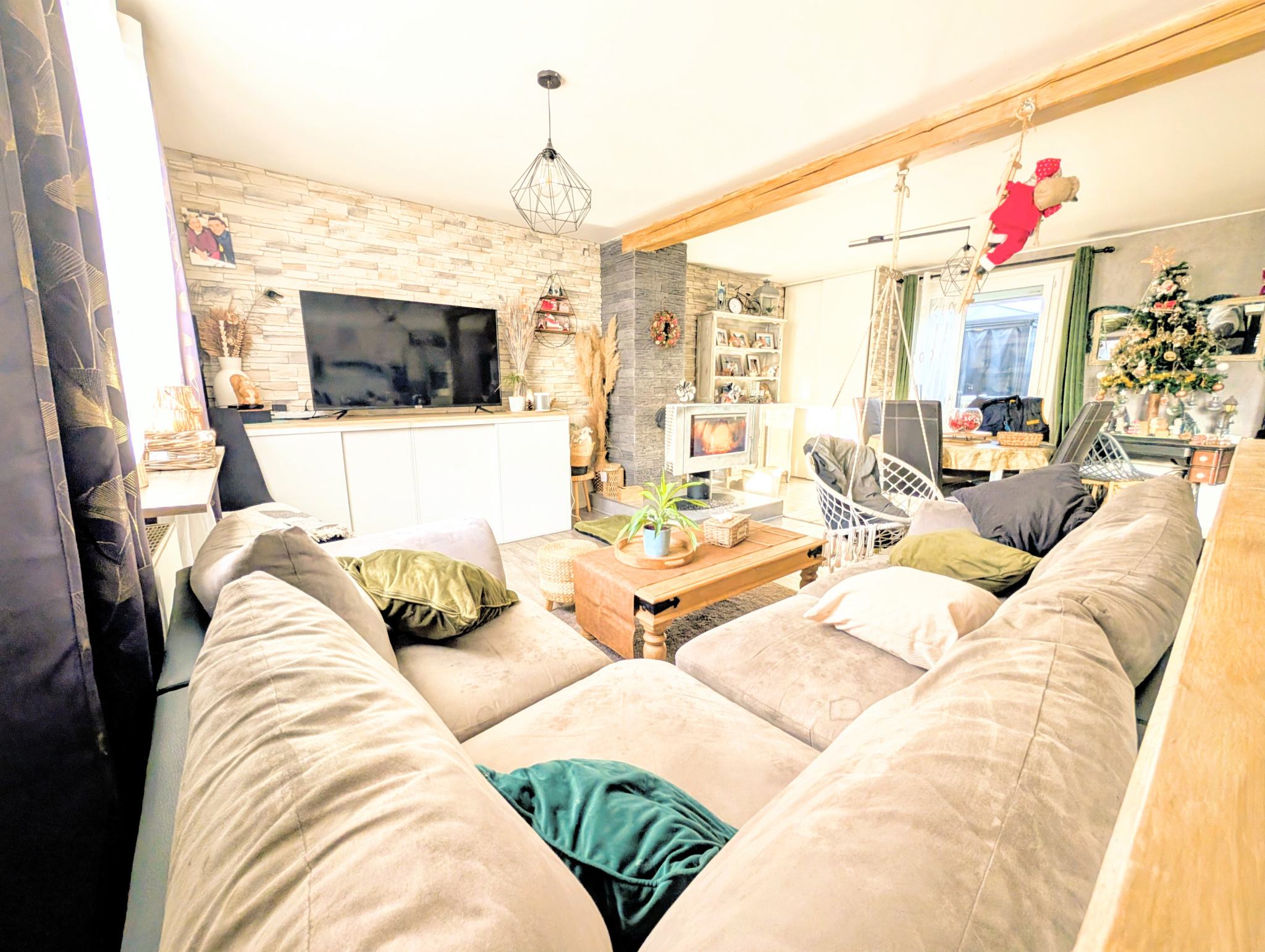 Elle se compose d'une belle pièce de vie avec salon/séjour/cuisine, d'une buanderie et d'un wc au rdc avec p...