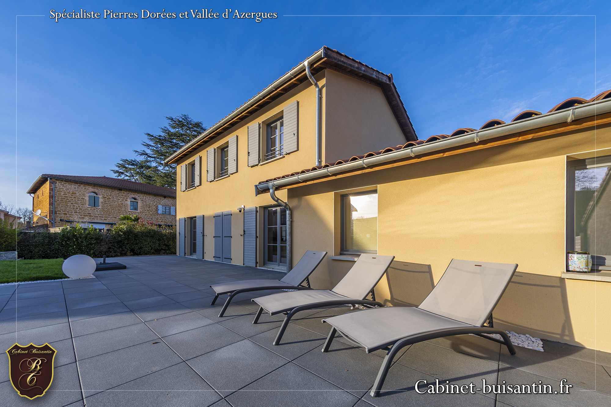 EXCLUSIVITE - A 7 minutes de Lozanne - En position dominante sur le village de Chessy, Villa de standing revisitée par architecte en 2003 de 185 m2 habitables comprenant : Vaste pièce à vivre de 81 m2 avec plafond rampant et fermes de charpente apparentes, ouv...