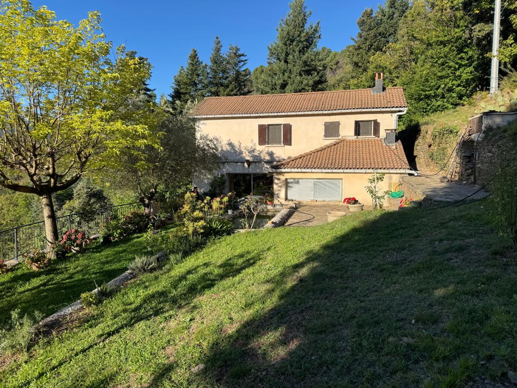 Située en pleine nature avec une vue imprenable sur les Cévennes, cette maison de caractère offre environ 171 m² habitables + nombreuses dépendances (garage 28 m², 2 caves, 1 véranda, 2 pièces annexes habitables), sur terrain d'environ 6 hectares, en rest...