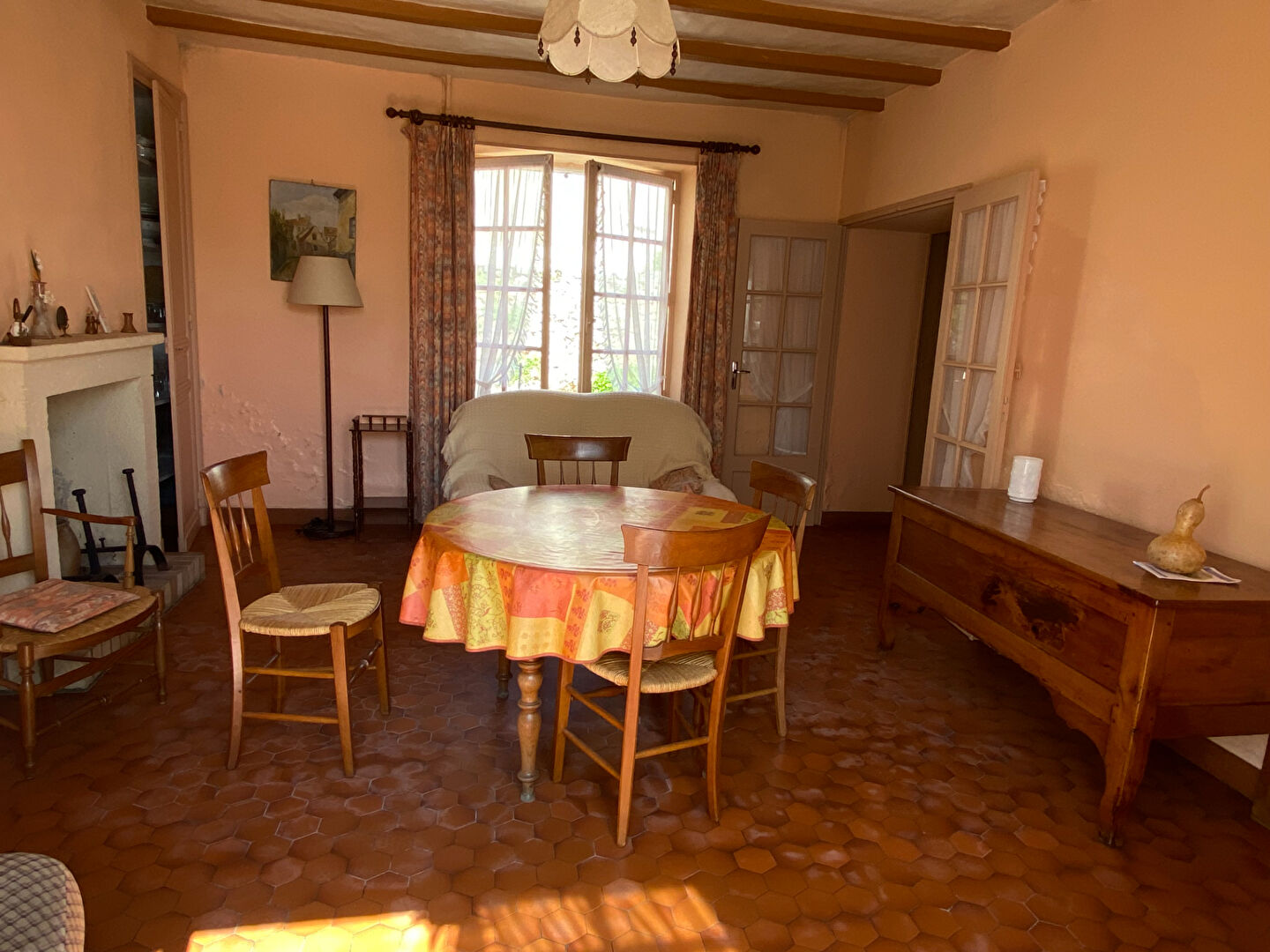 Une entrée, une cuisine, un séjour, un salon, un couloir, un dégagement, une salle de bains, un WC et une chambre.