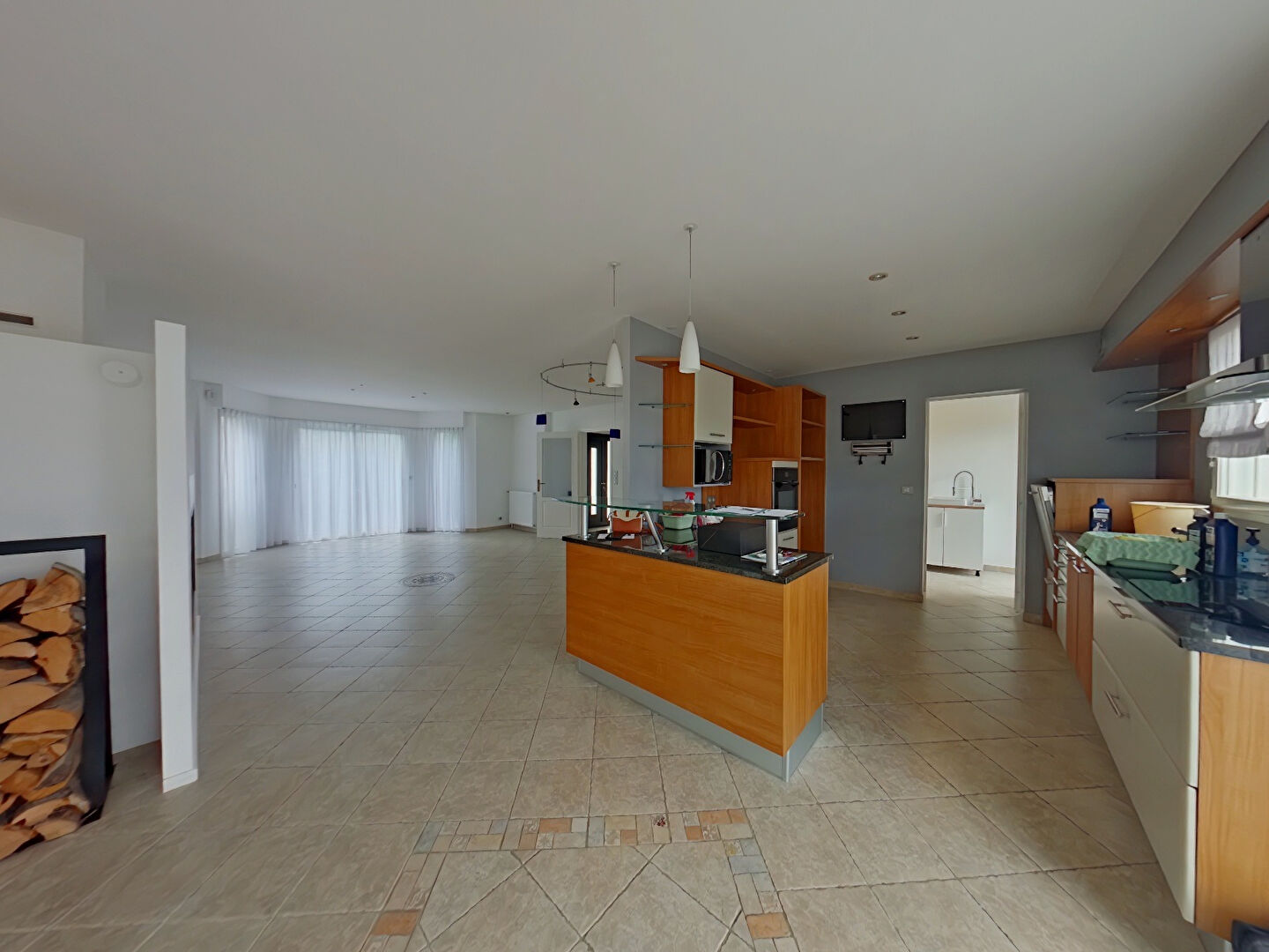 Joli séjour de 40 m², une cuisine équipée avec buanderie et cellier, mezzanine , et espace polyvalent (idéa...