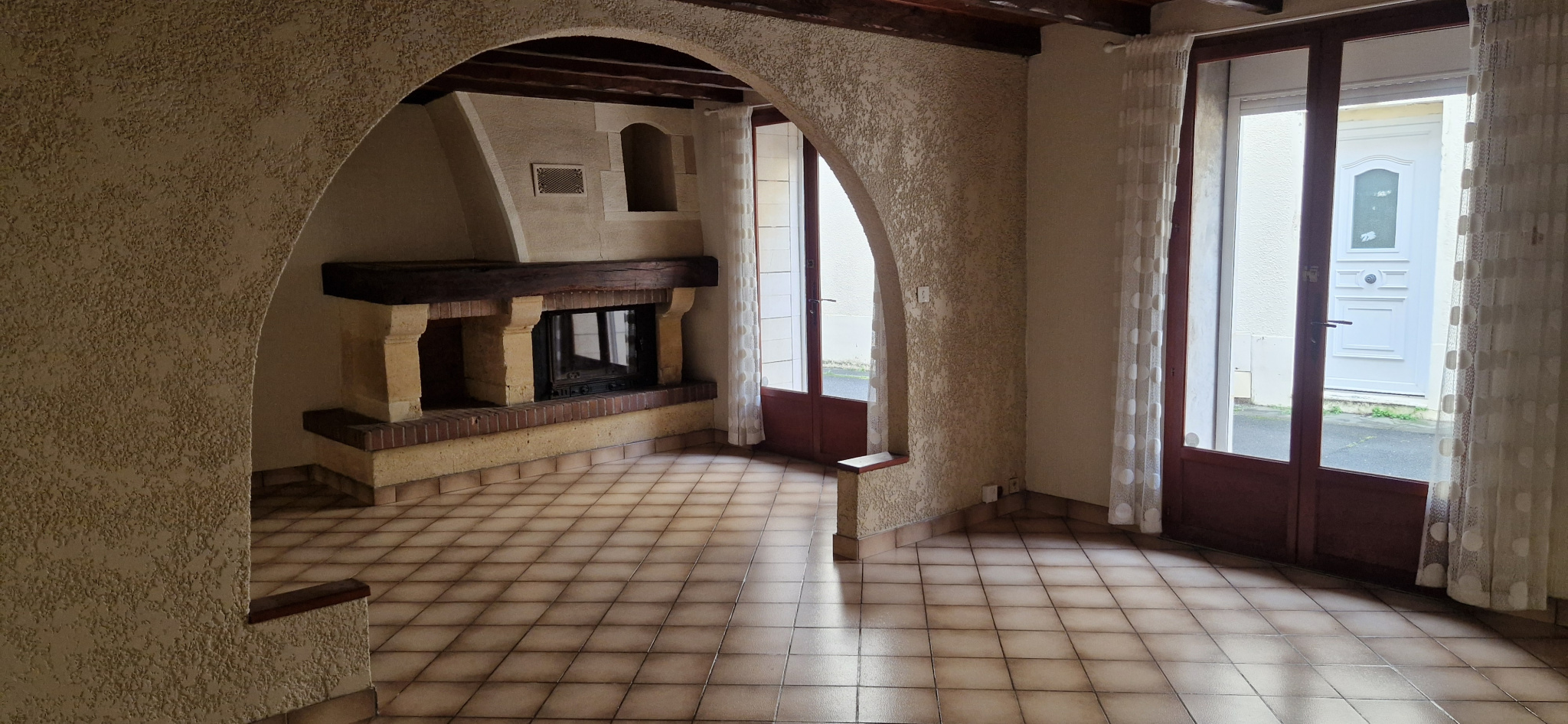 maison ancienne en pierre 120 m2 comprenant, une cuisine équipée, un séjour avec cheminée foyer fermé, dégagement, trois chambres, salle d'eau, WC.