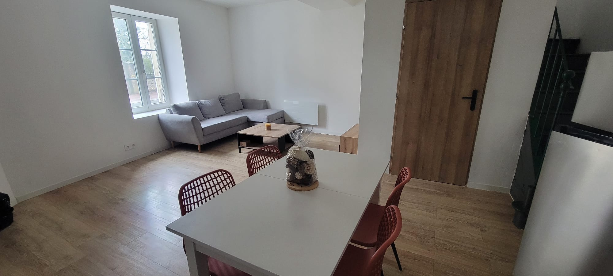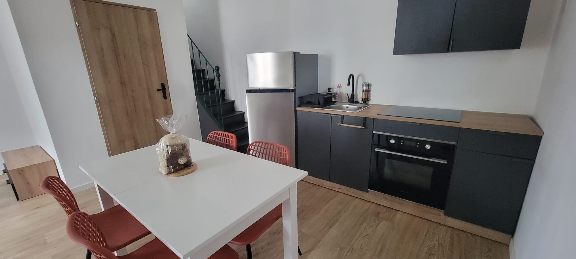 Lot 1 de 56 m2 (Libre & meublé) : Maison sans extérieur comprenant une pièce de vie avec cuisine équipée, WC et lingerie. À l'étage : 2 chambres...