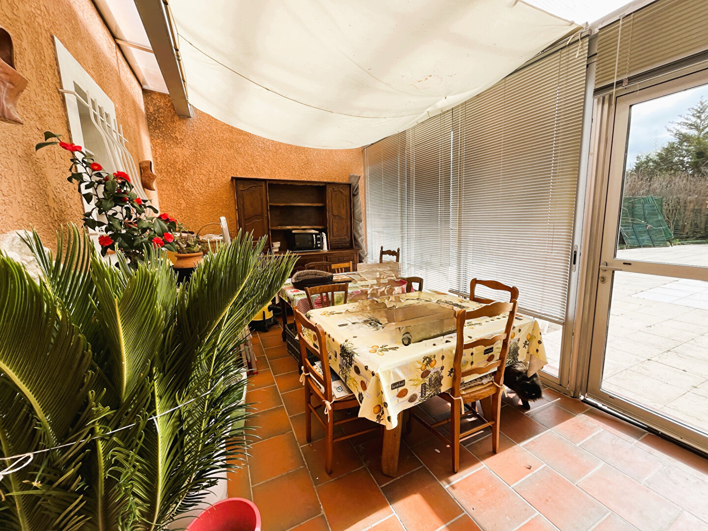 Villa de construction traditionnelle (parpaings isolants, briques rouges, plâtre. ) d'environ 140 m² habitable composée d'un séjour avec cheminée insert et espace bureau en mezzanine, une cuisine séparée avec cellier attenant, 4 chambres dont 3 en re...