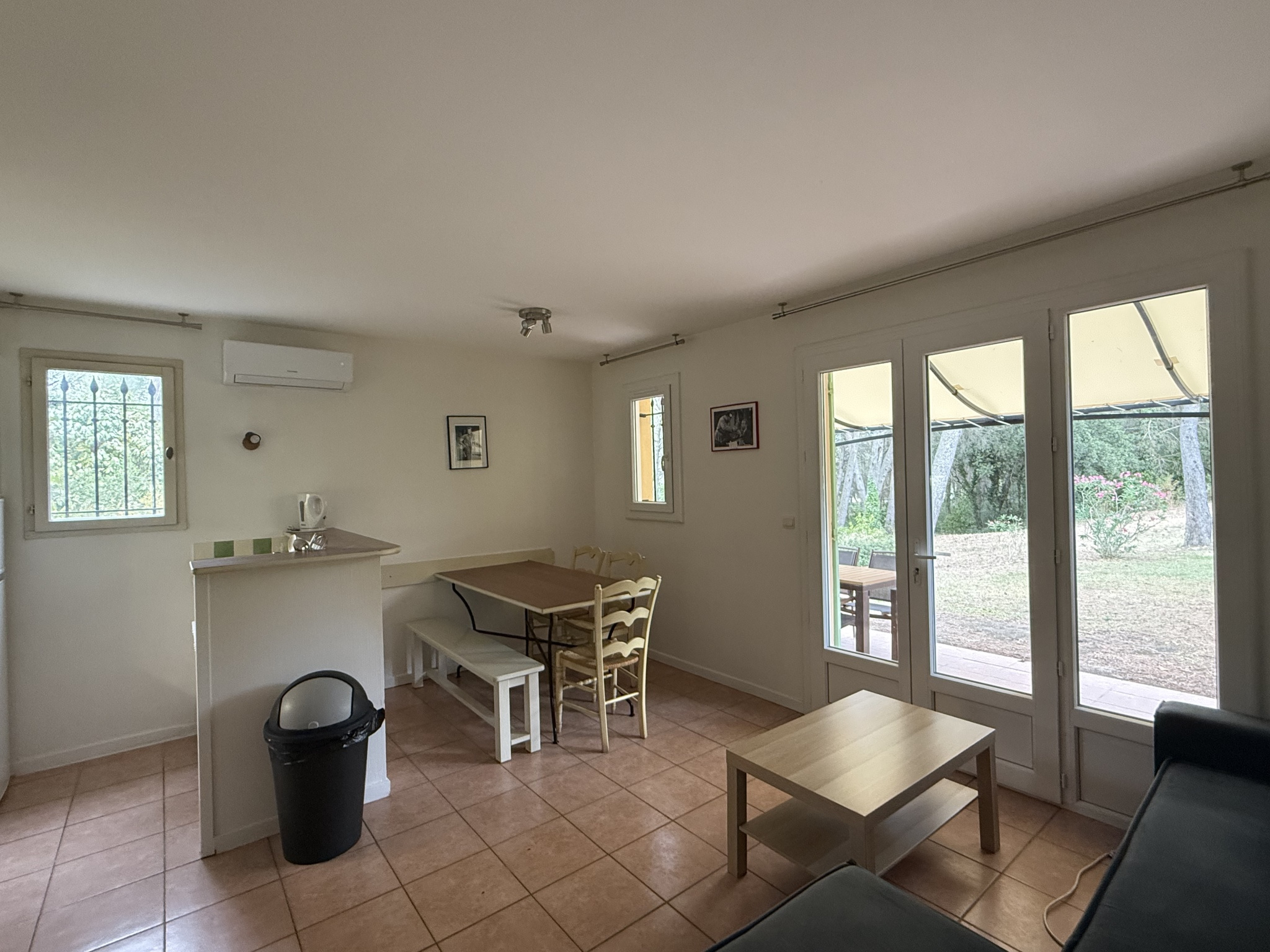 La bastide de 43 m2 est composée d'une entrée, rangement avec lave linge, un wc et so...