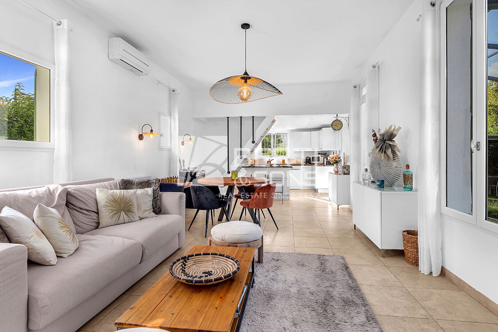 Vente d'une charmante maison de 107 m² habitables dans le quartier prisé de Minelle à Mandelieu-la-Napoule. Sur 2 niveaux, cette maison discrètement mitoyenne d'un côté offre une vue sur le jardin. La cuisine américaine aménagée s'ouvre sur un v...