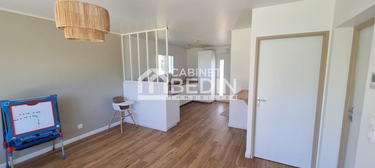 MARCHEPRIME. Maison récente d'environ 85 m² bien agencée et bénéficiant d'une décoration actuelle et soignée. Au rdc : séjour lumineux, cuisine ouverte équipée, wc, lingerie et garage ; à l'étage : palier, trois chambres, salle de bains, wc, le ...