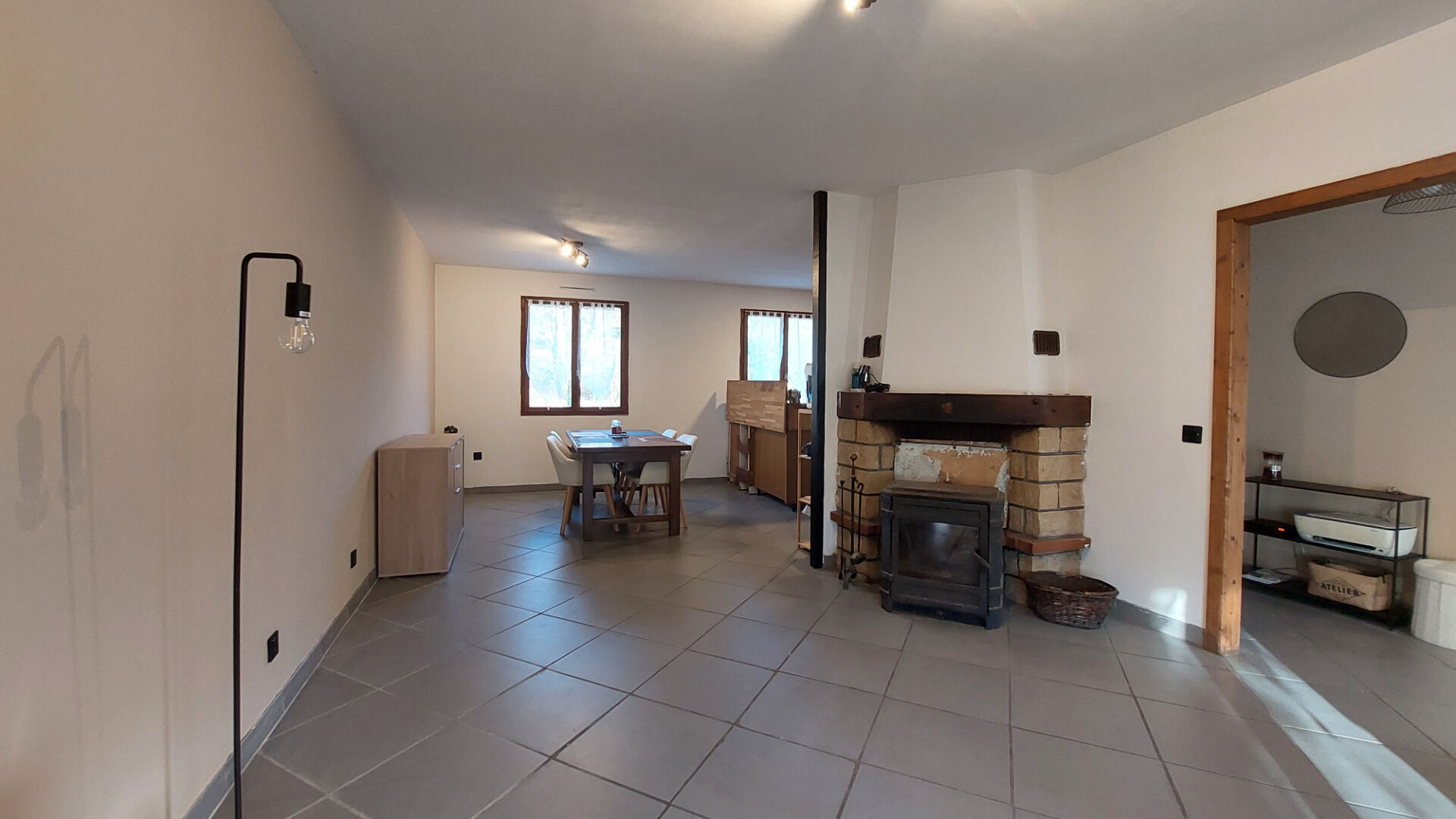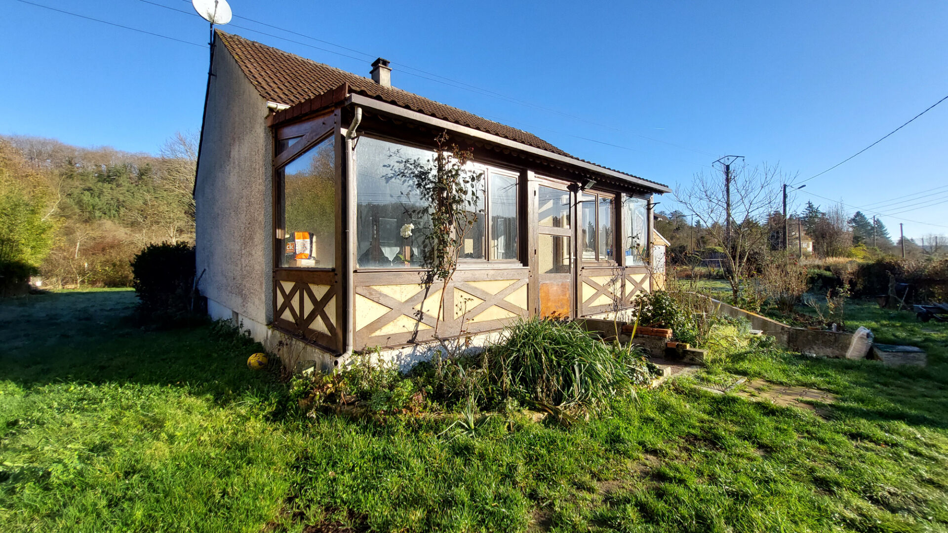Maison de 3 pièces amenagée avec cuisine. Salle d'eau avec wc séparée. Atelier et abri de jardin.