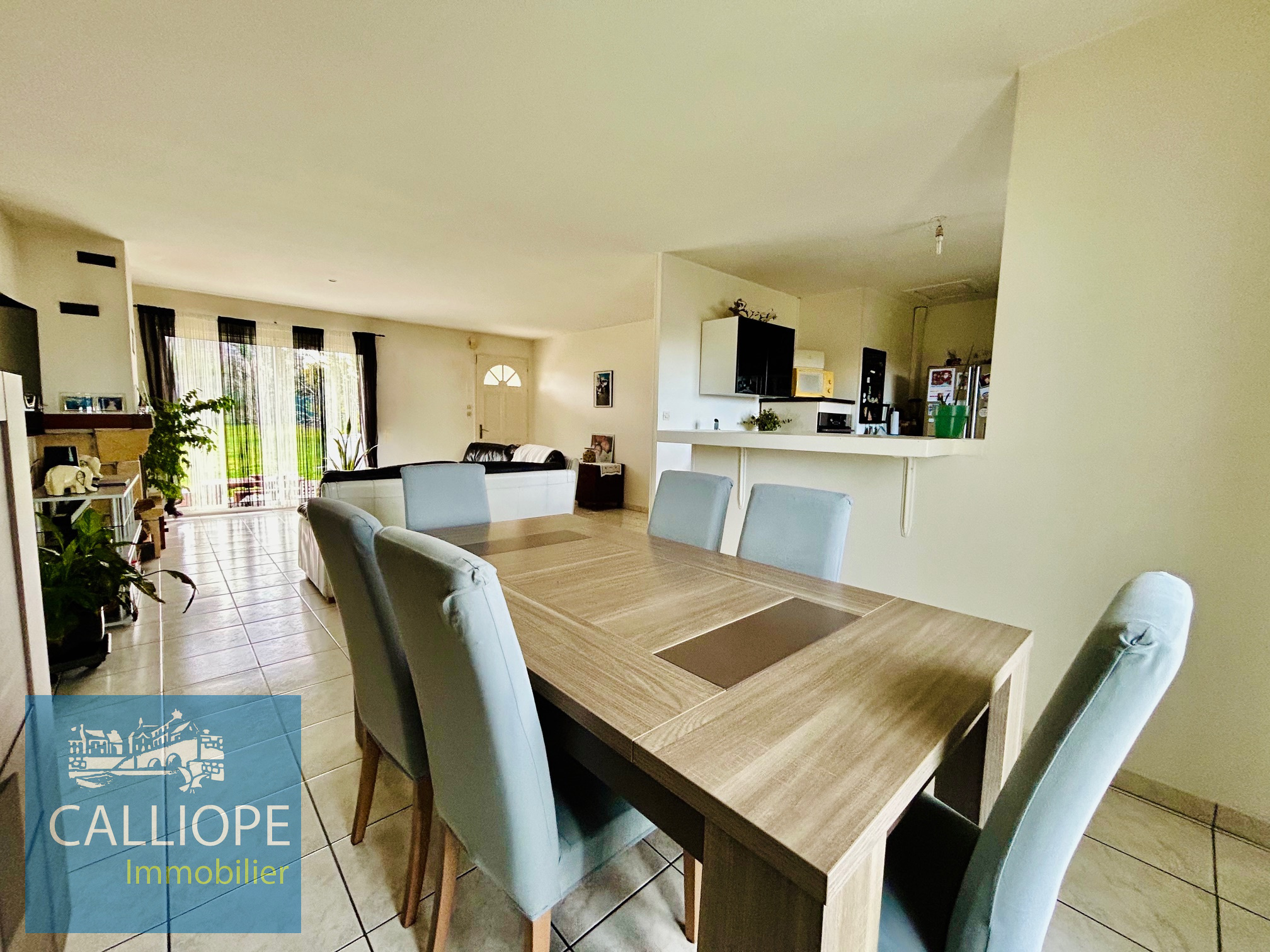 Très jolie maison entretenue avec soins de 117 m2 habitables composée d'un vaste séjour avec cuisine US équipée de 60 m2 et une cheminée, un grand cellier, 3 chambres et une salle de bains. Chauffage électrique et clim réversible. Double vitrage et volets...