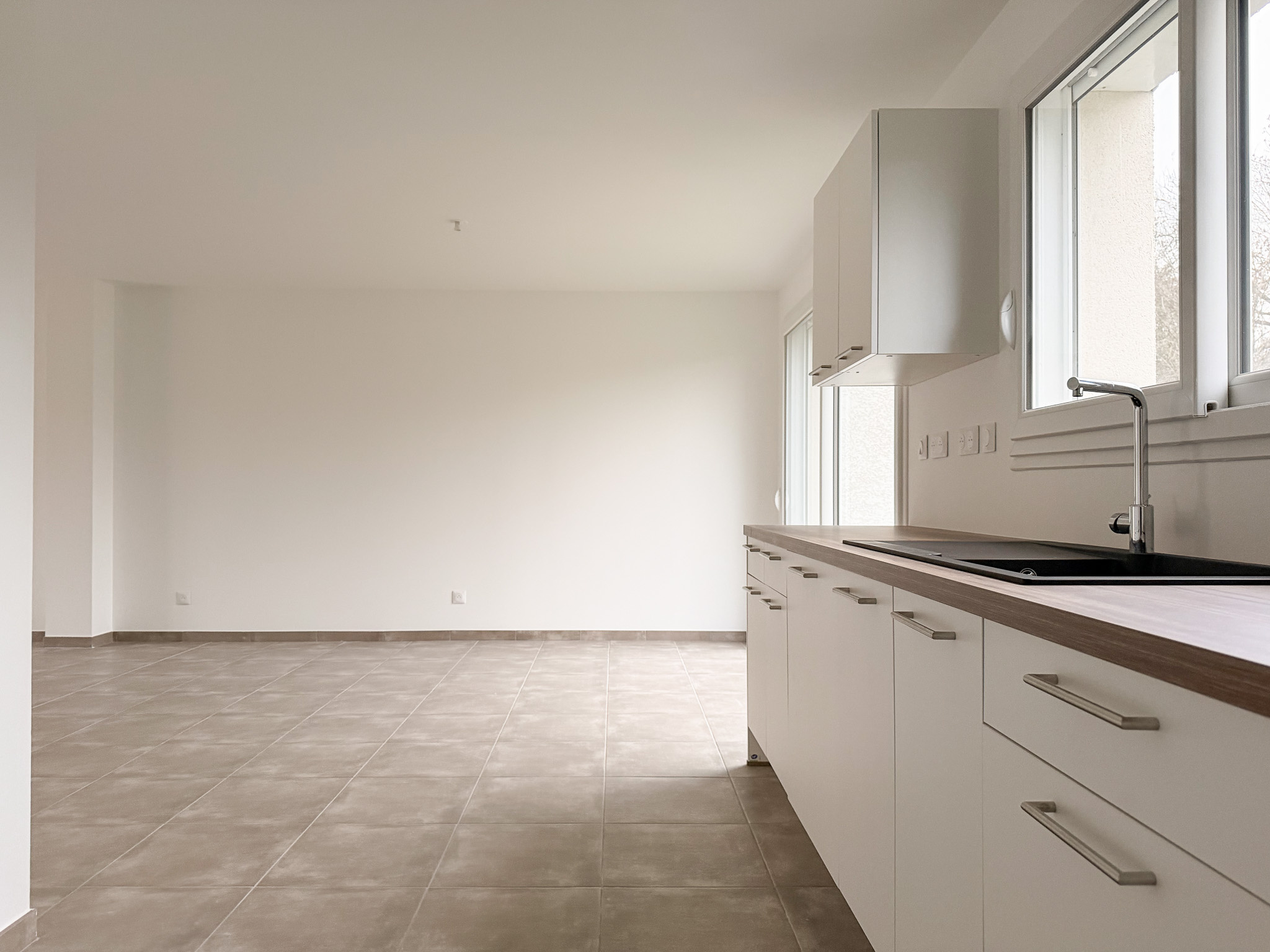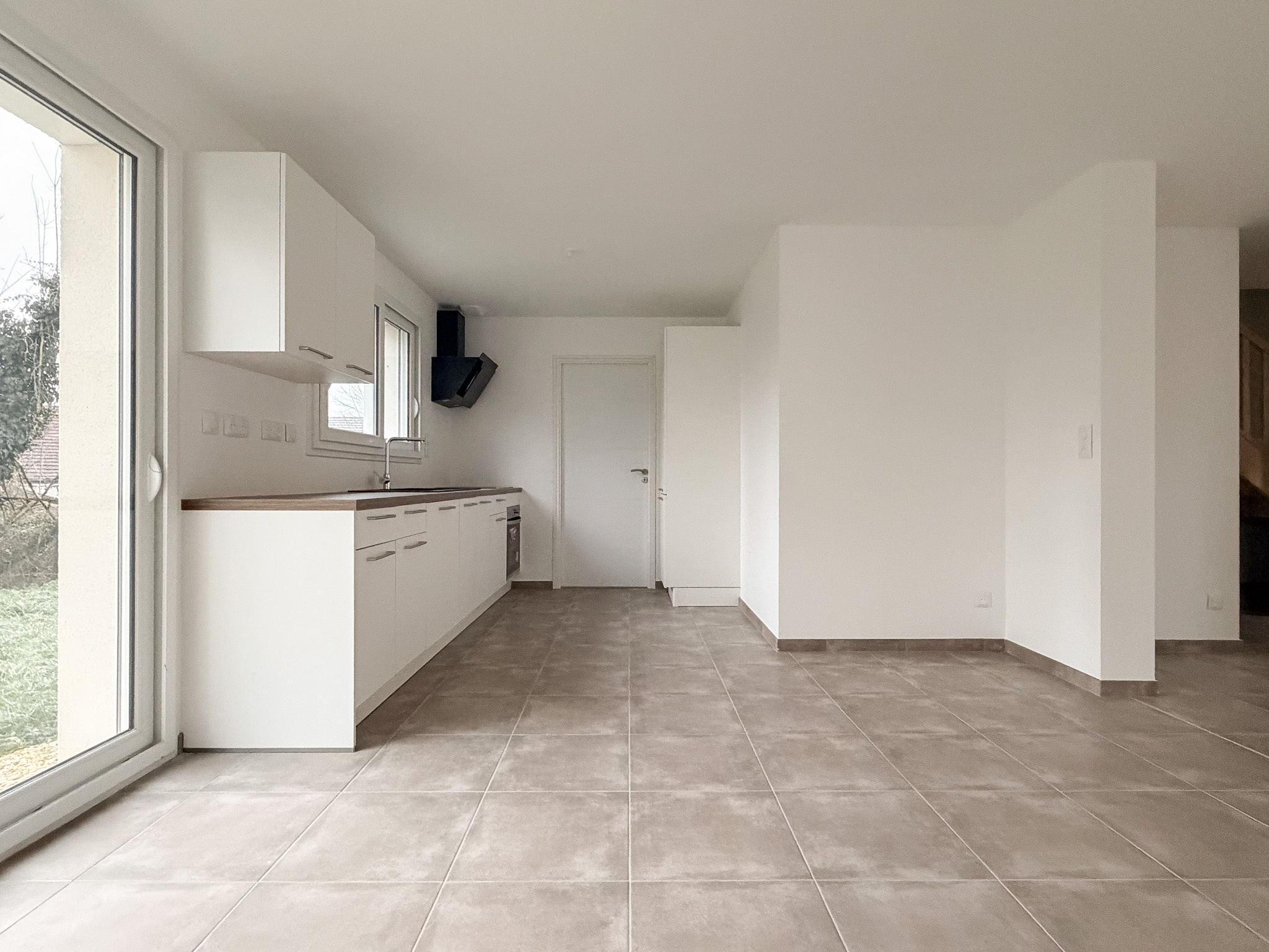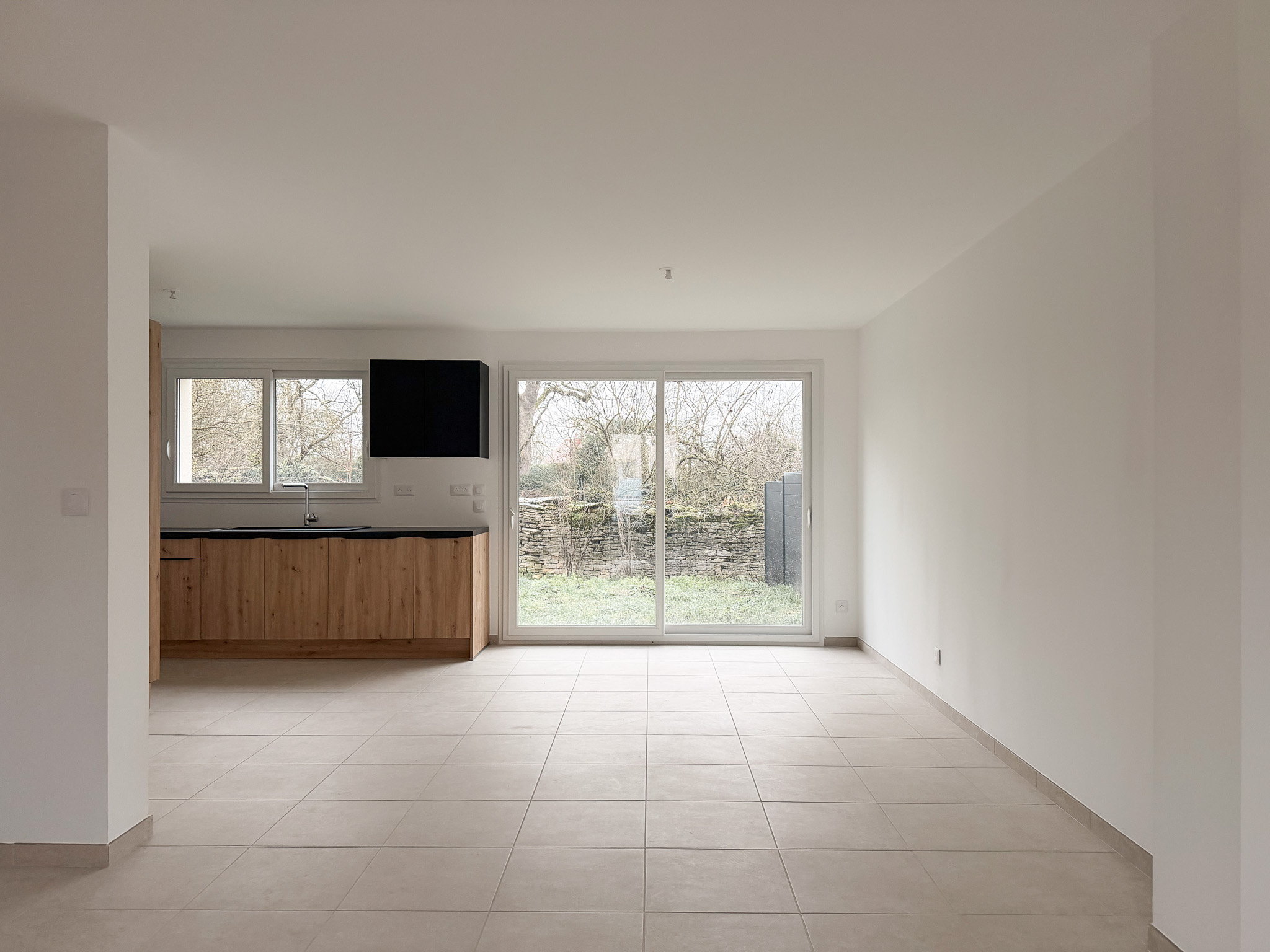 Au coeur du village , maison neuve avec trois chambres , deux salles de bains , garage et terrain.