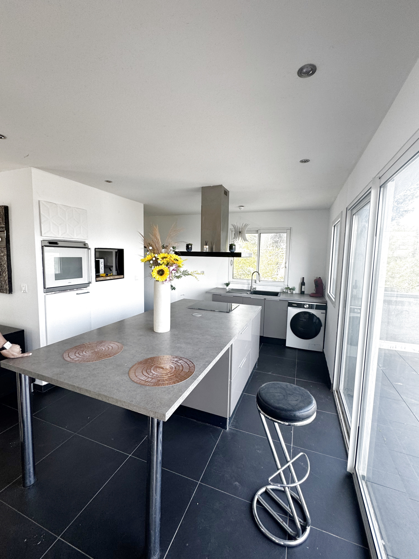 Cuisine ouverte sur un salon de 58 m2 avec des volumes généreux, parfait pour recevoir et s...