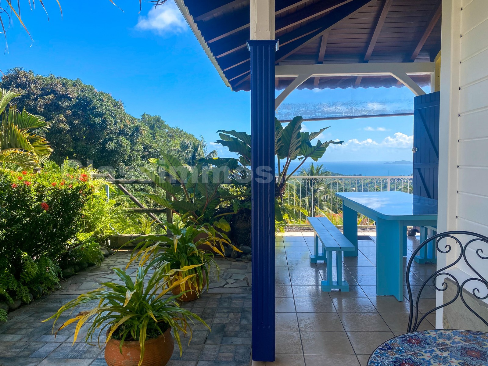 Situé au Marigot, cet appartement de 65 m² offre un cadre de vie privilégié au sein d'une villa en R+1, avec vue dégagée sur la mer et la campagne.