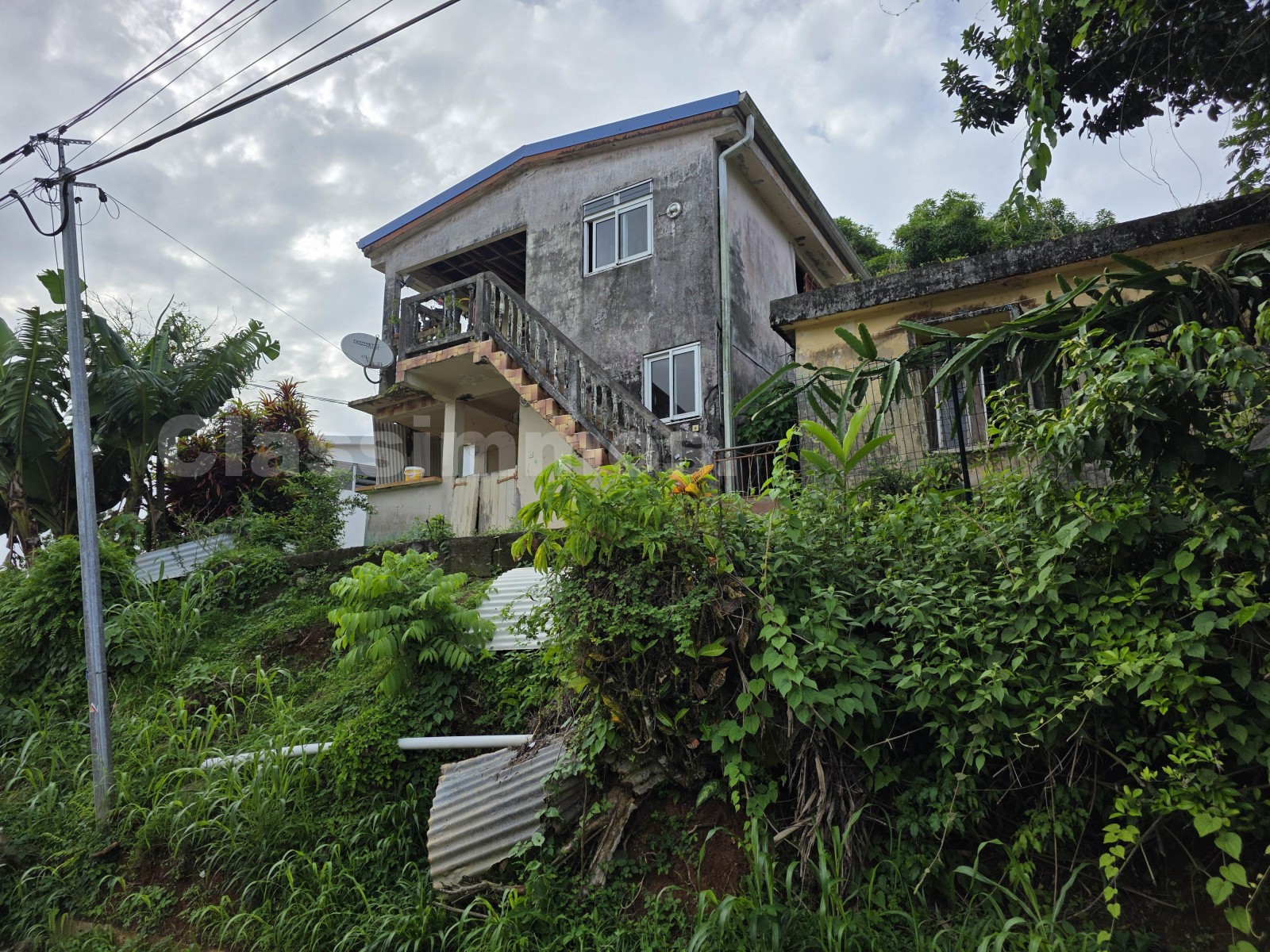 Au bourg du Vauclin (Le), investissement immobilier avec un bon potentiel futur avec une maison de ville disposant de deux façades d'accès et dépendances (cuisine extérieure, garage).